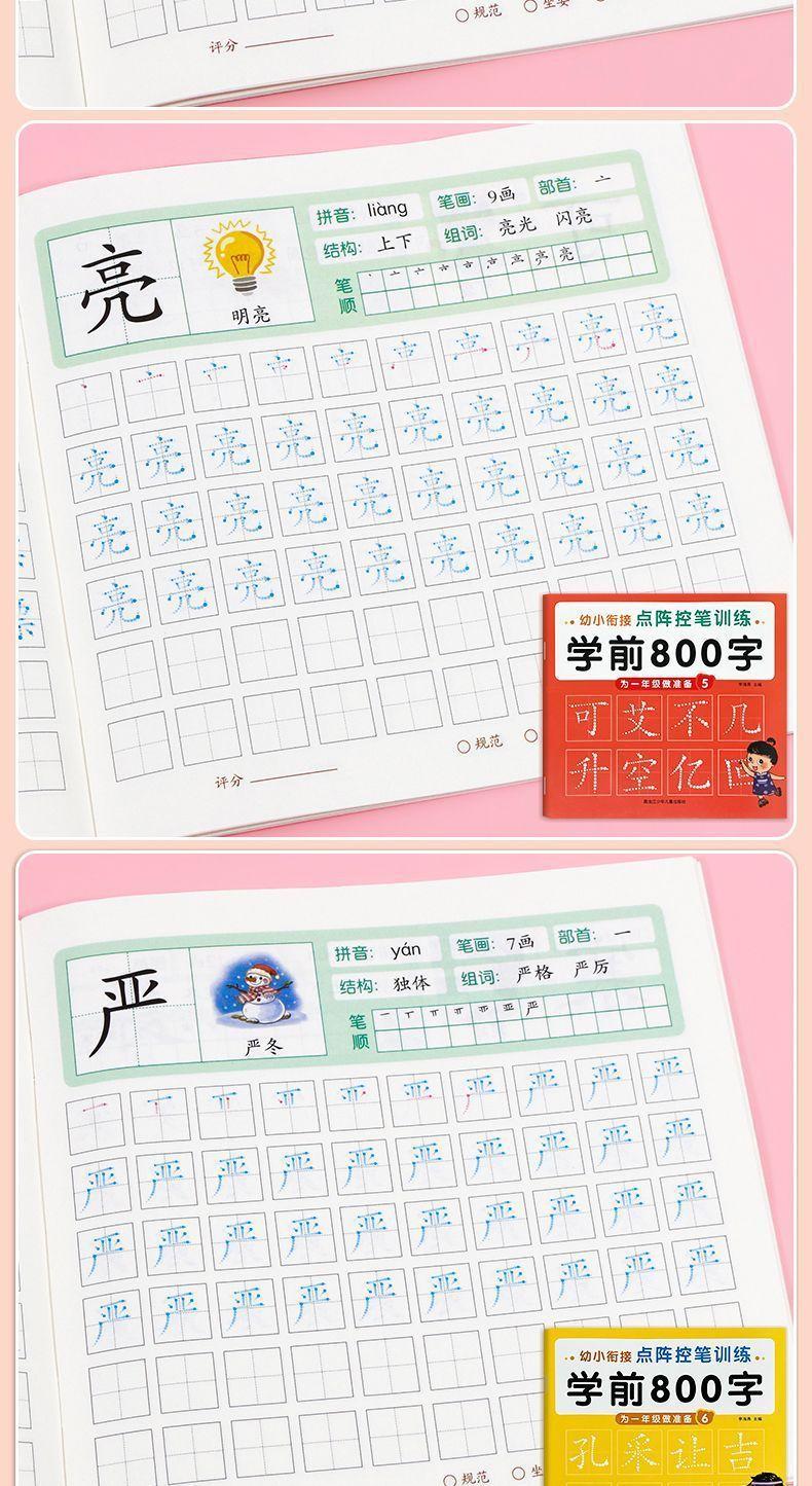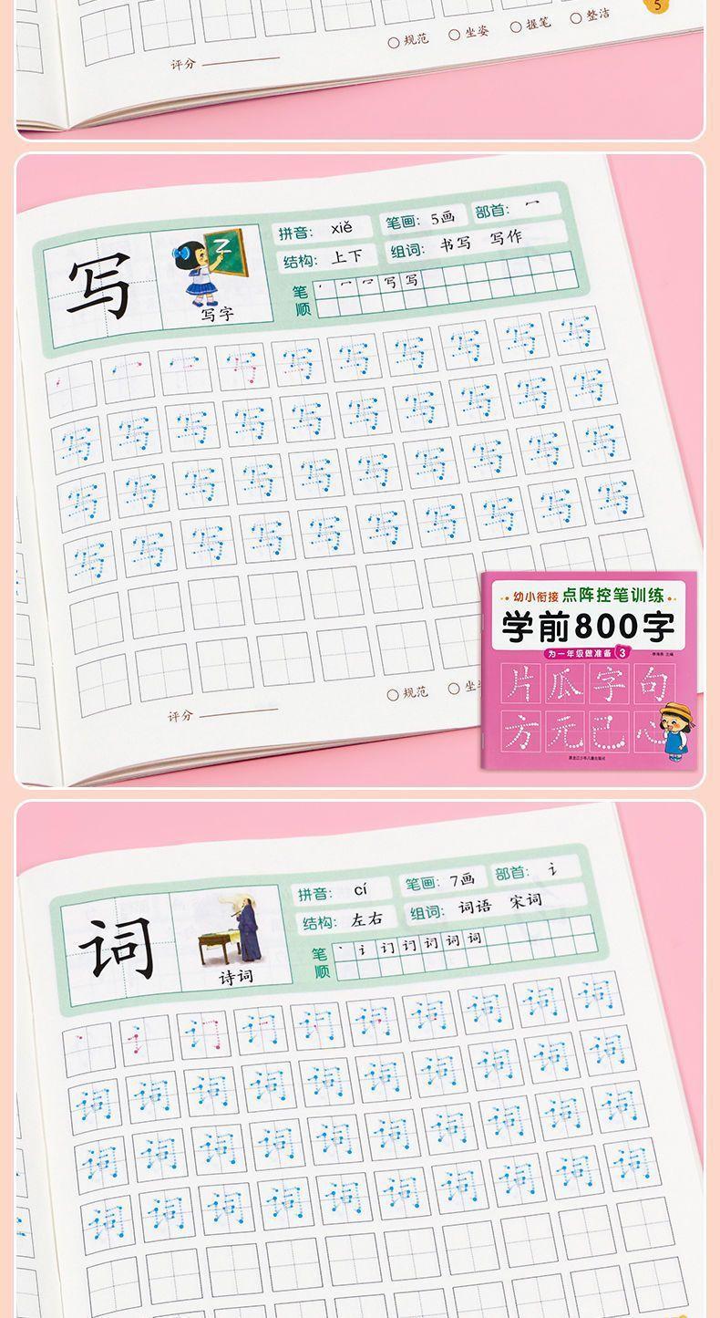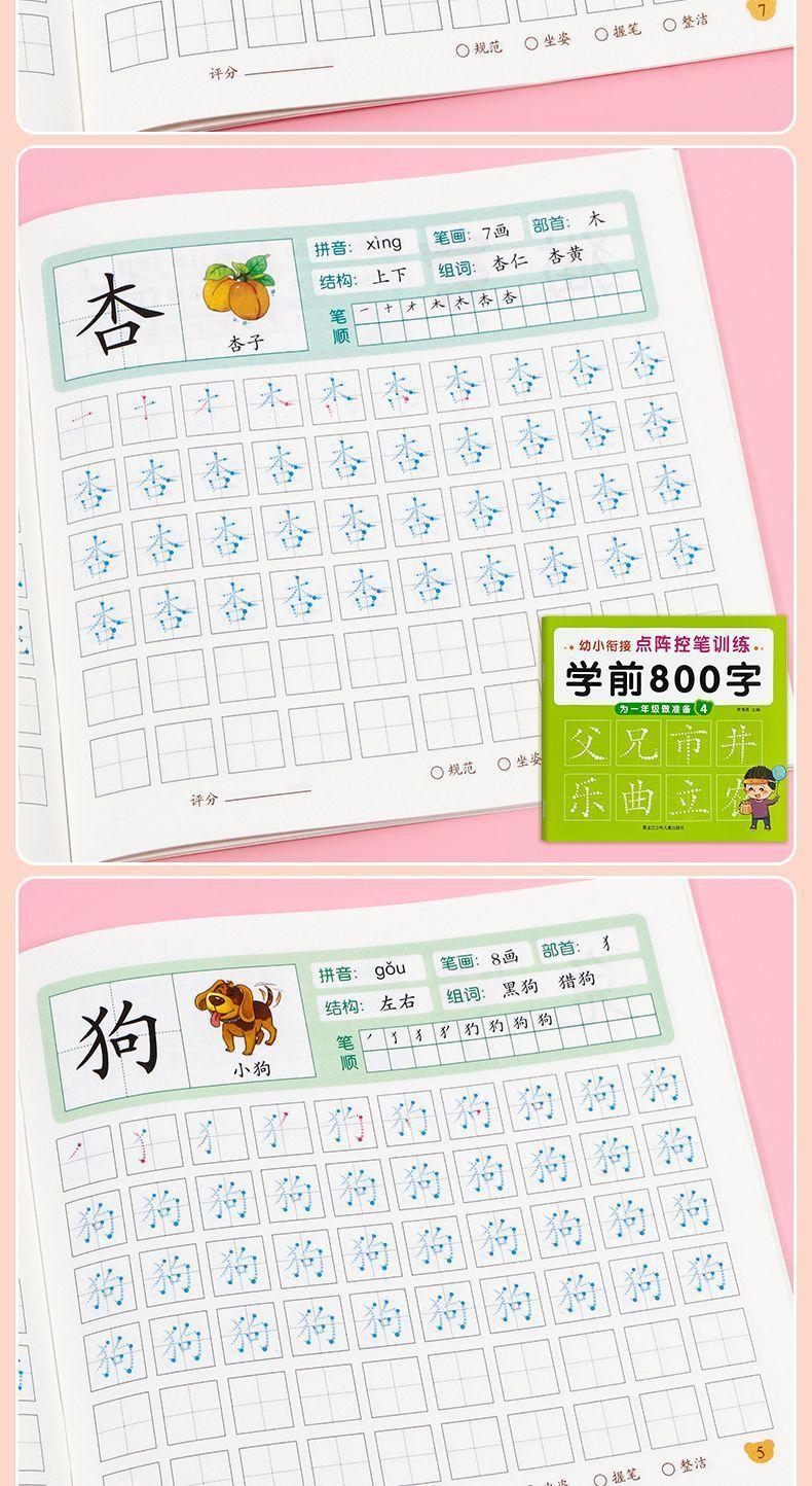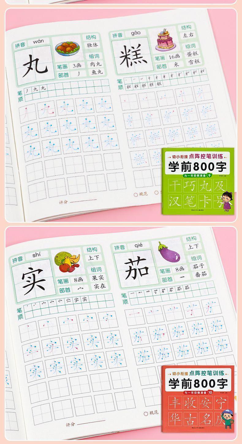 Caneta de controle de matriz de pontos de coesão jovem treinamento pré-escolar 800 caracteres caracteres chineses caracteres vermelhos prática caderno de exercícios caracteres do jardim de infância prática