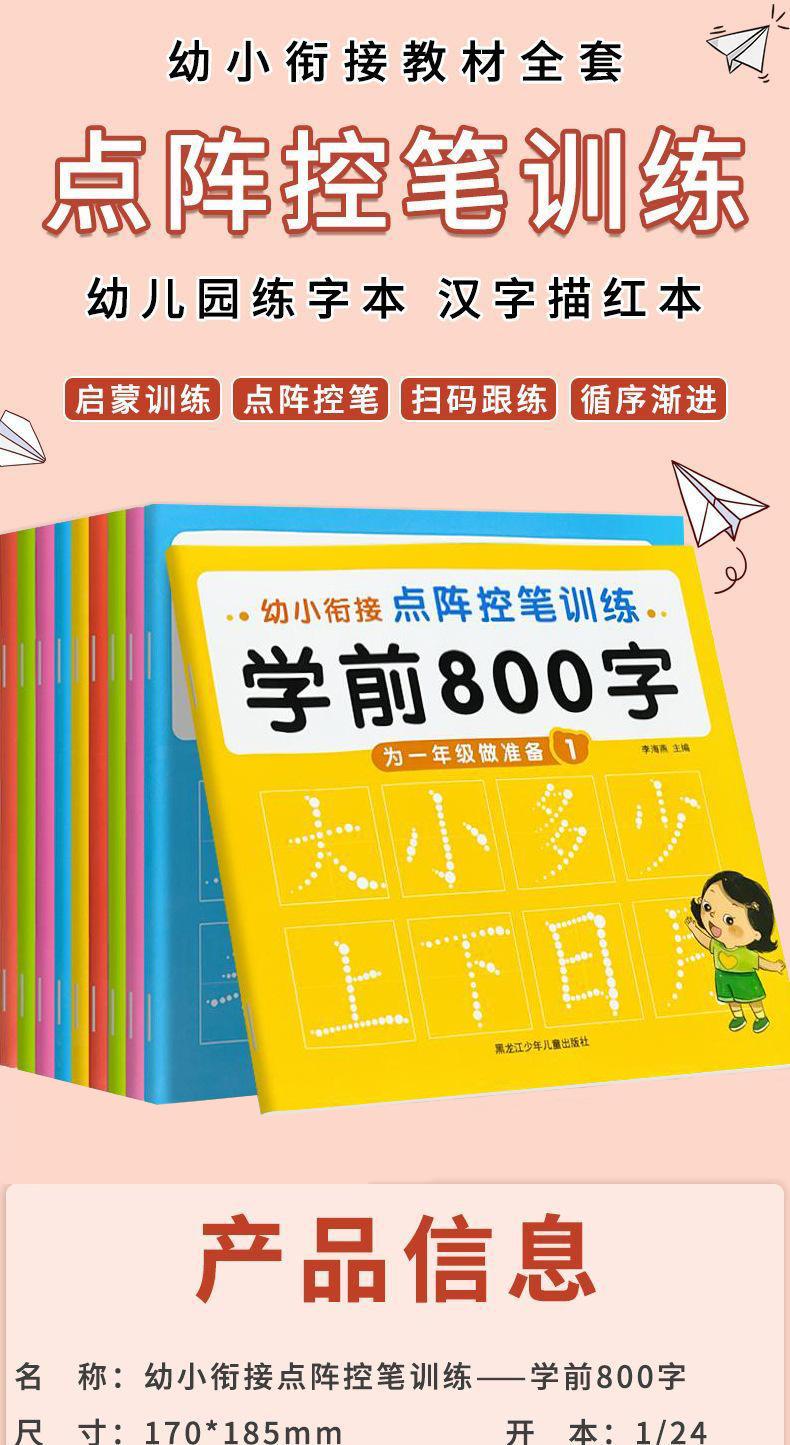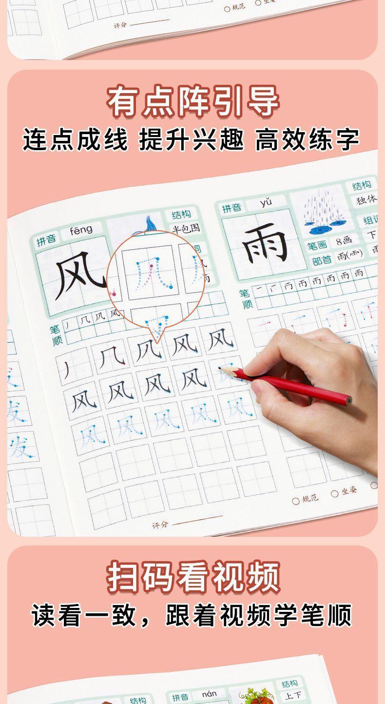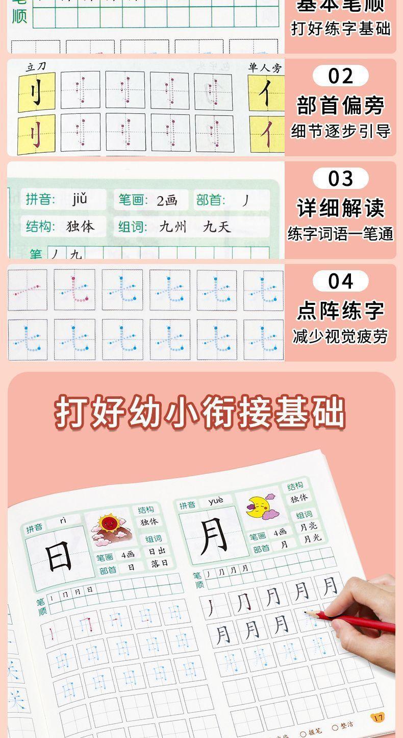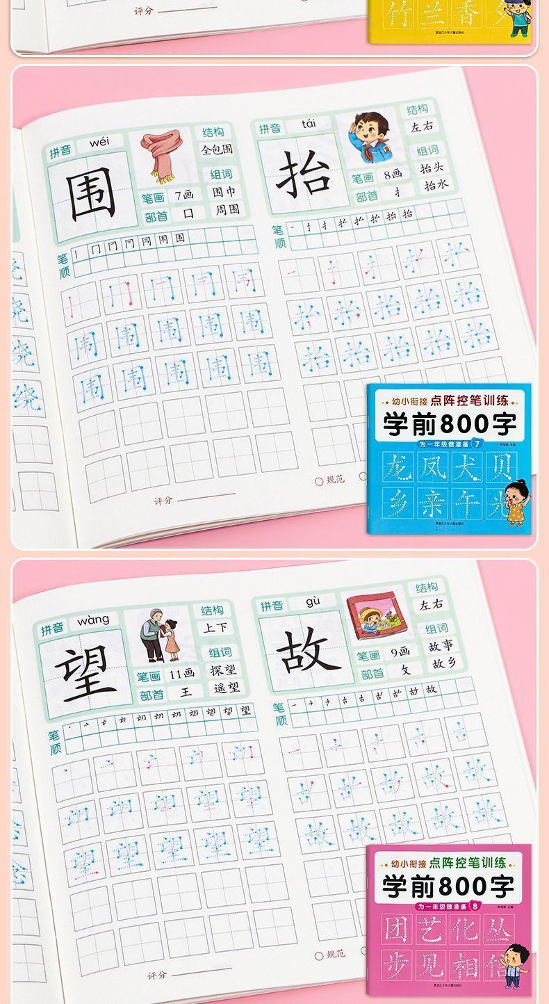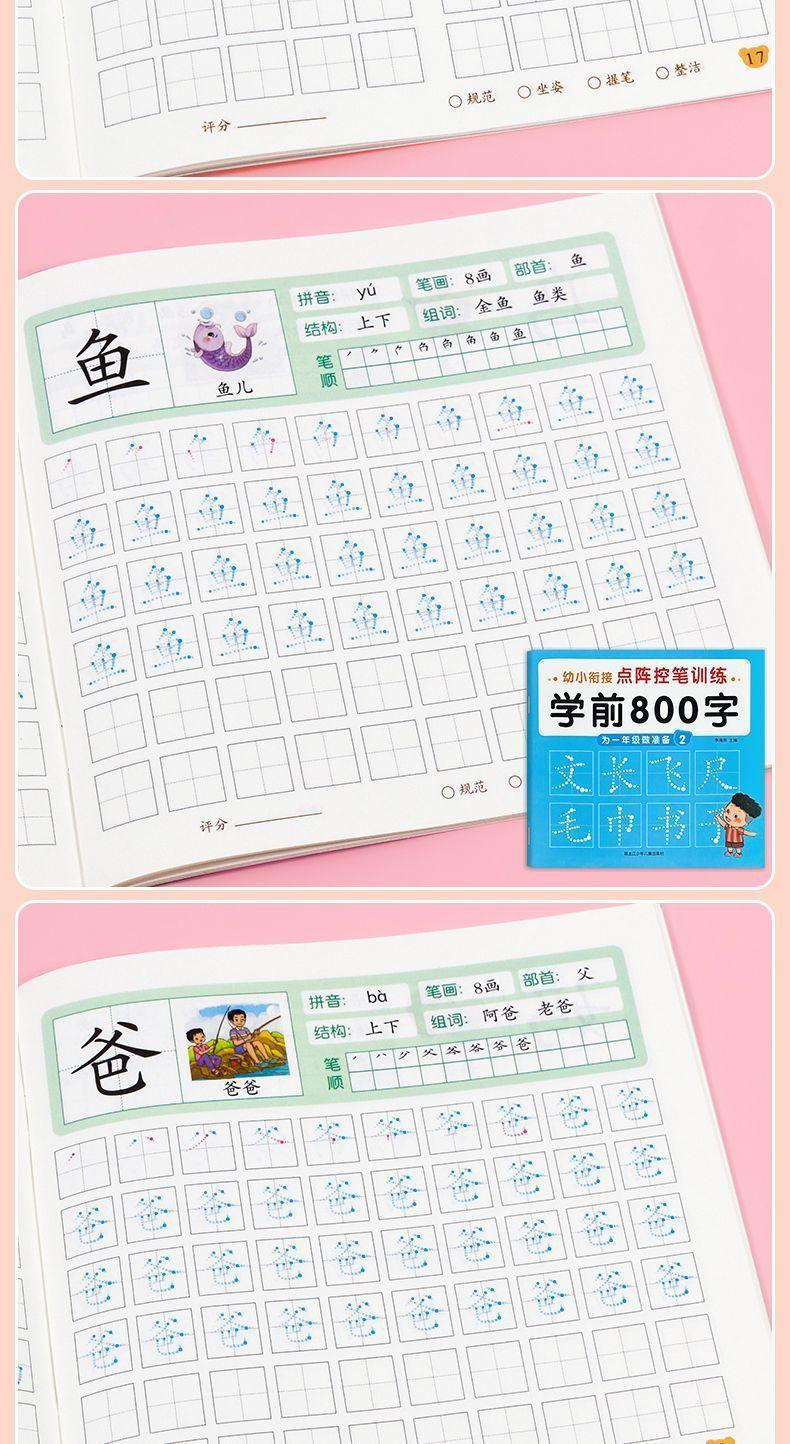Caneta de controle de matriz de pontos de coesão jovem treinamento pré-escolar 800 caracteres caracteres chineses caracteres vermelhos prática caderno de exercícios caracteres do jardim de infância prática