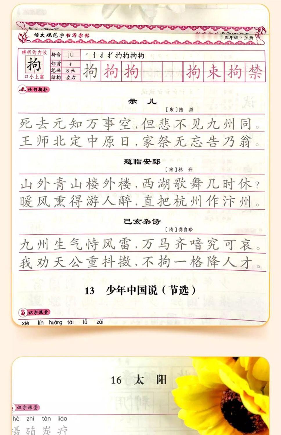 Synchronized chinese calligraphy practice book for fifth graders volume 1