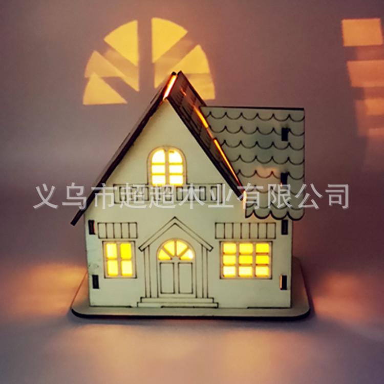 Nova decoração de férias cabine luminosa de madeira para crianças presente faça você mesmo decorações para árvores de Natal