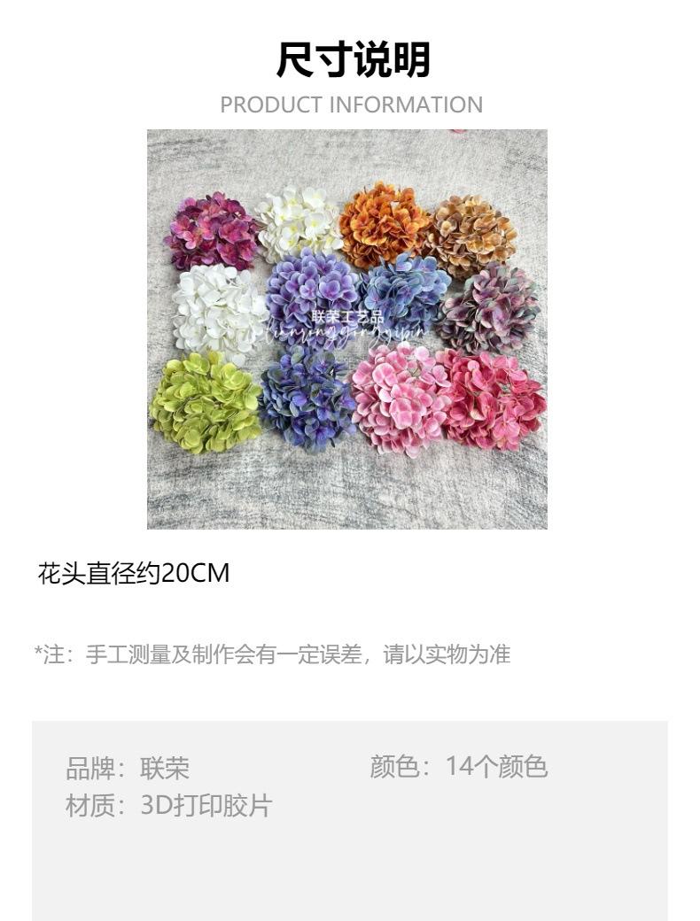 Simulação de hortênsia Flor Impressão 3D Filme Arranjo de casamento Grinalda Arranjo de flores DIY Headwear Decoração de parede de flores de auditório de casamento