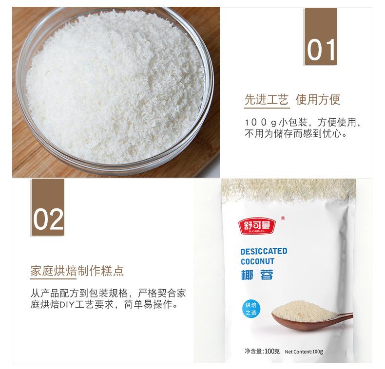 Shukeman pó de coco seda de coco 100g cozimento especial coco pequeno quadrado pó de coco bolo pão biscoito matérias-primas