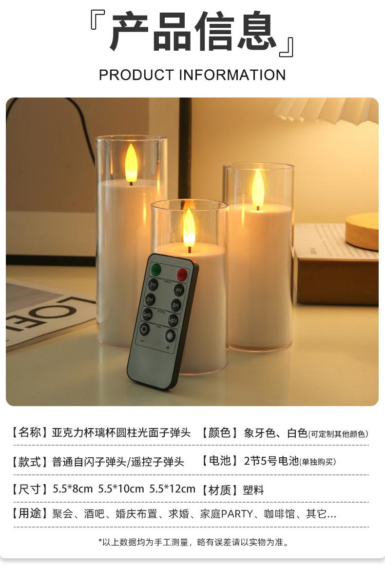 Lâmpada de vela de acrílico LED eletrônica para festa de aniversário, sala secreta, decoração de casamento, vela falsa