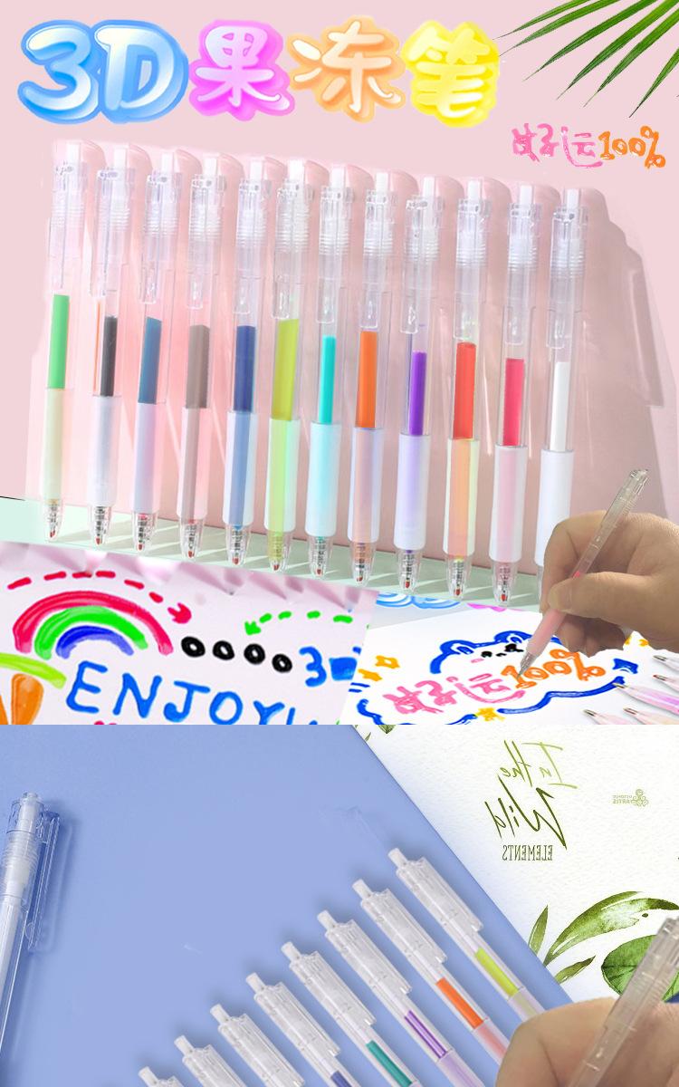 Caneta de gel 3D de 12 cores transfronteiriça, caneta de gel colorida, caneta de pintura de cor doce, caneta criativa fofa de mão para conta