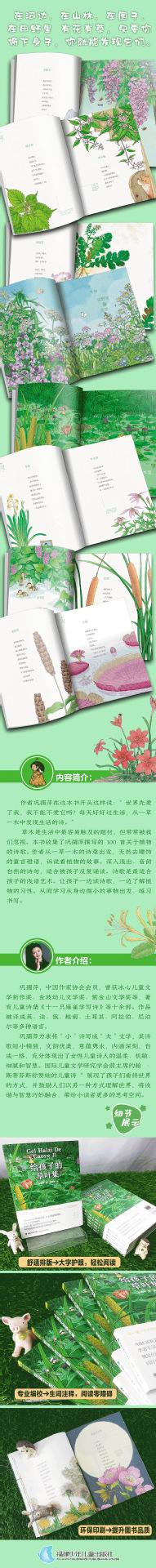 O autor Gong Ruping disse no início deste livro: "O mundo me amou primeiro, então posso não amá-lo? Viva uma vida boa todos os dias e descubra a poesia da vida em cada planta e árvore." Plantas e árvores são fáceis de tocar na vida, mas muitas vezes são esquecidas por nós. Este livro reúne 100 poemas sobre plantas escritos por Gong Ruping. O autor parte do significado poético de cada planta e árvore e conta a história das plantas em palavras infantis naturais e sem adornos. Os poemas são fáceis de entender e têm rimas naturais, adequadas para as crianças recitarem repetidamente. A poesia é uma arte de linguagem simples adequada para crianças. Deixe as crianças entenderem os hábitos das plantas enquanto leem poemas. Para que possam aprender a praticar a escrita a partir das pequenas coisas ao seu redor.