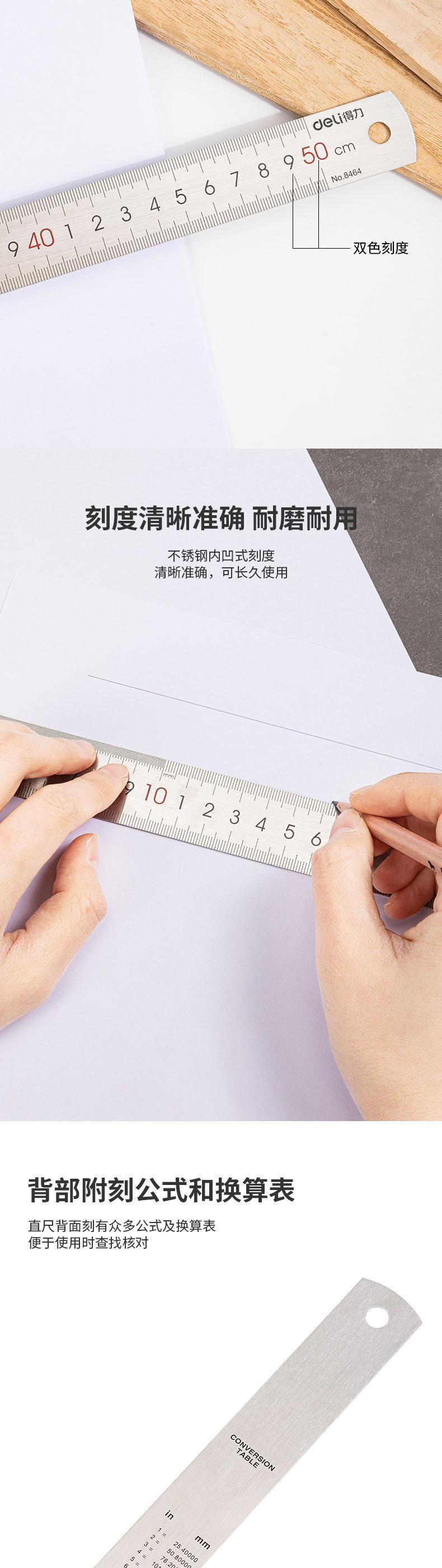 Compre Deli 8464 Régua de Aço 50cm Régua de Aço Inoxidável Régua Reta Régua de Escala de Desenho de Medição Material de Escritório no atacado no Joom.pro
