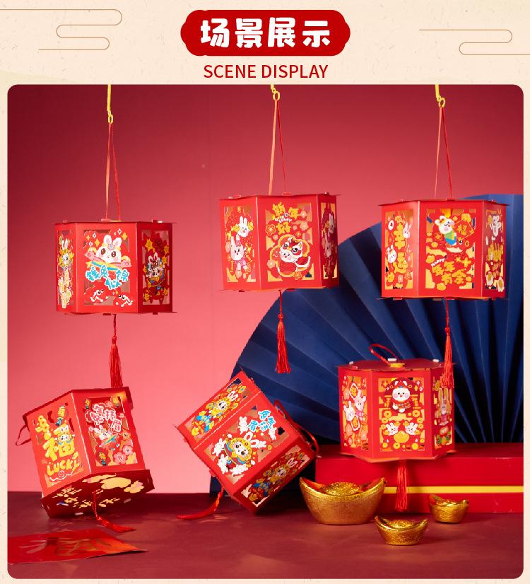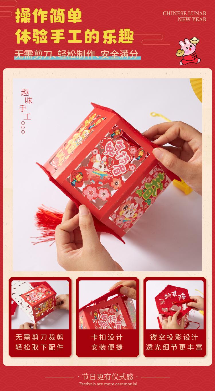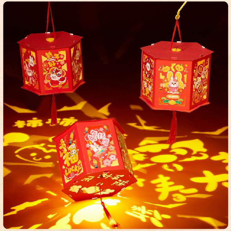 Lanterna Ano do Cavalo DIY Lanterna Carrossel de Projeção Ano do Coelho Kit de Material de Artesanato para Crianças do Jardim de Infância