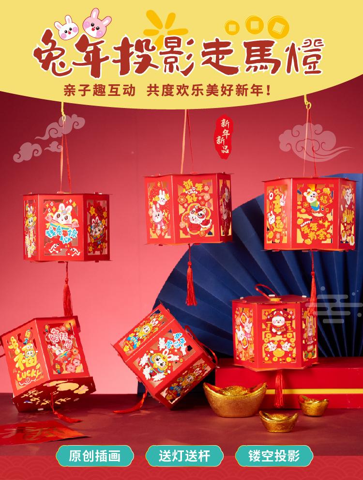 Compre Lanterna Ano do Cavalo DIY Lanterna Carrossel de Projeção Ano do Coelho Kit de Material de Artesanato para Crianças do Jardim de Infância no atacado no Joom.pro