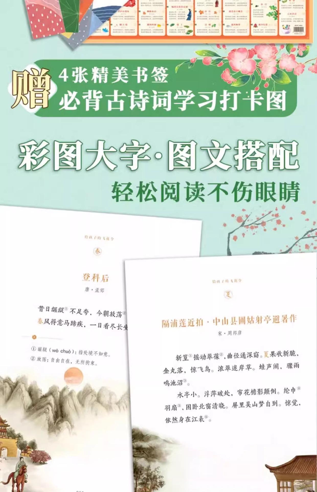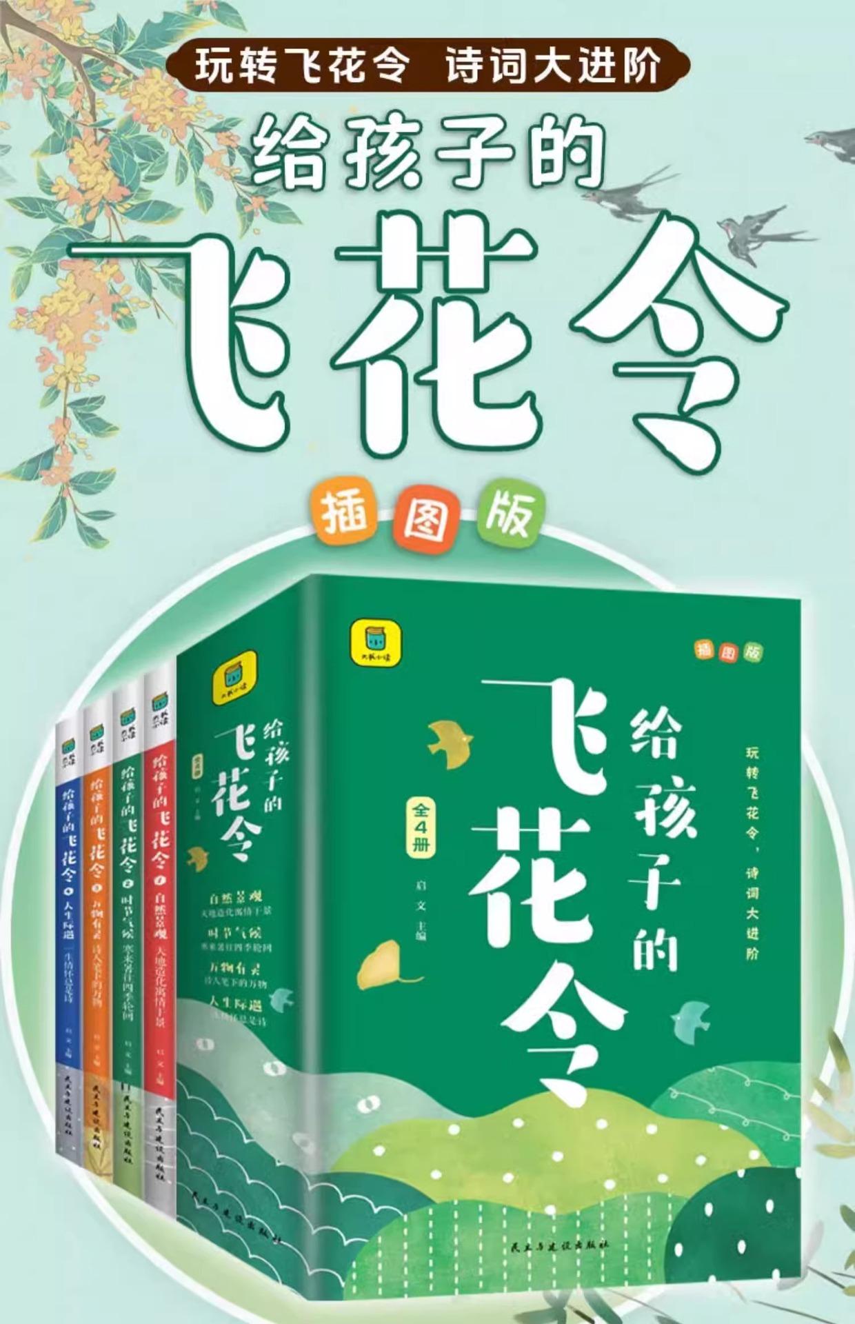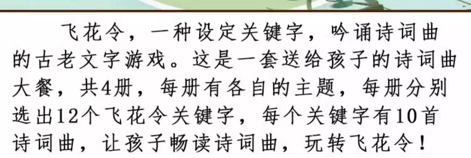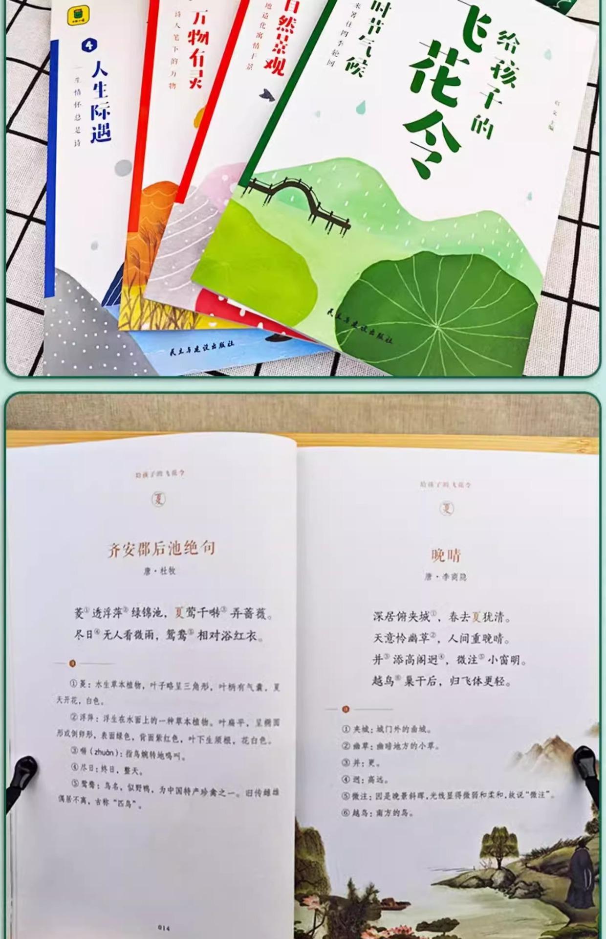A ordem das flores voadoras para crianças lê poemas na versão colorida de 4 volumes da ordem das flores voadoras para dar às crianças uma apreciação de poemas antigos.