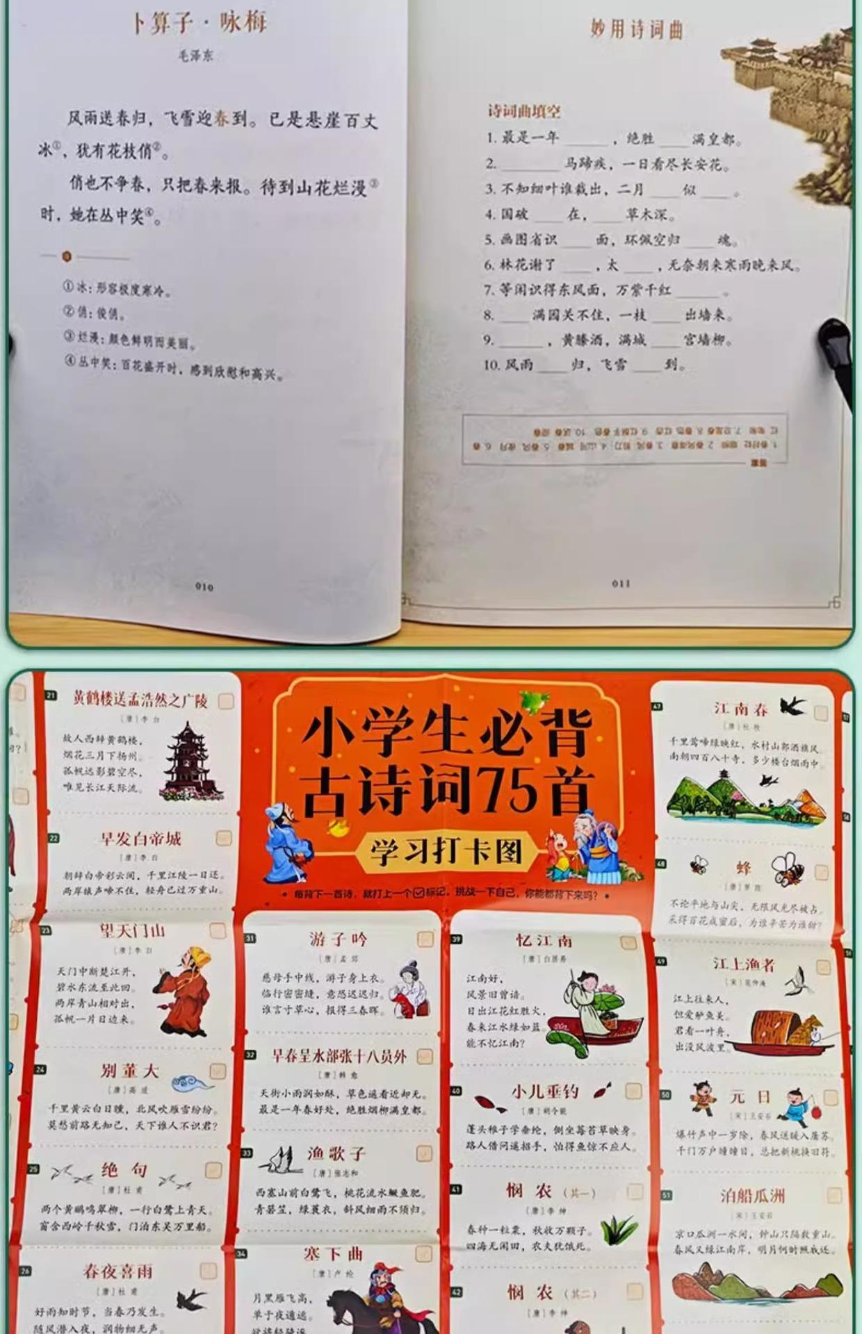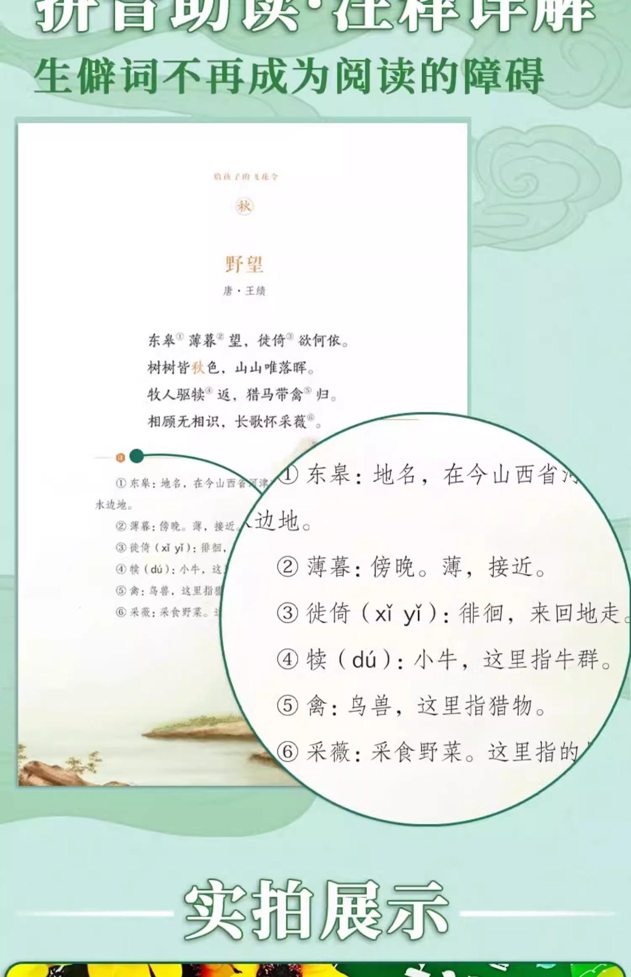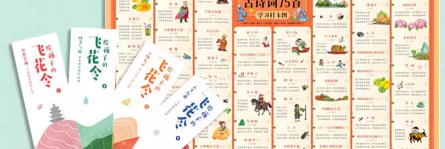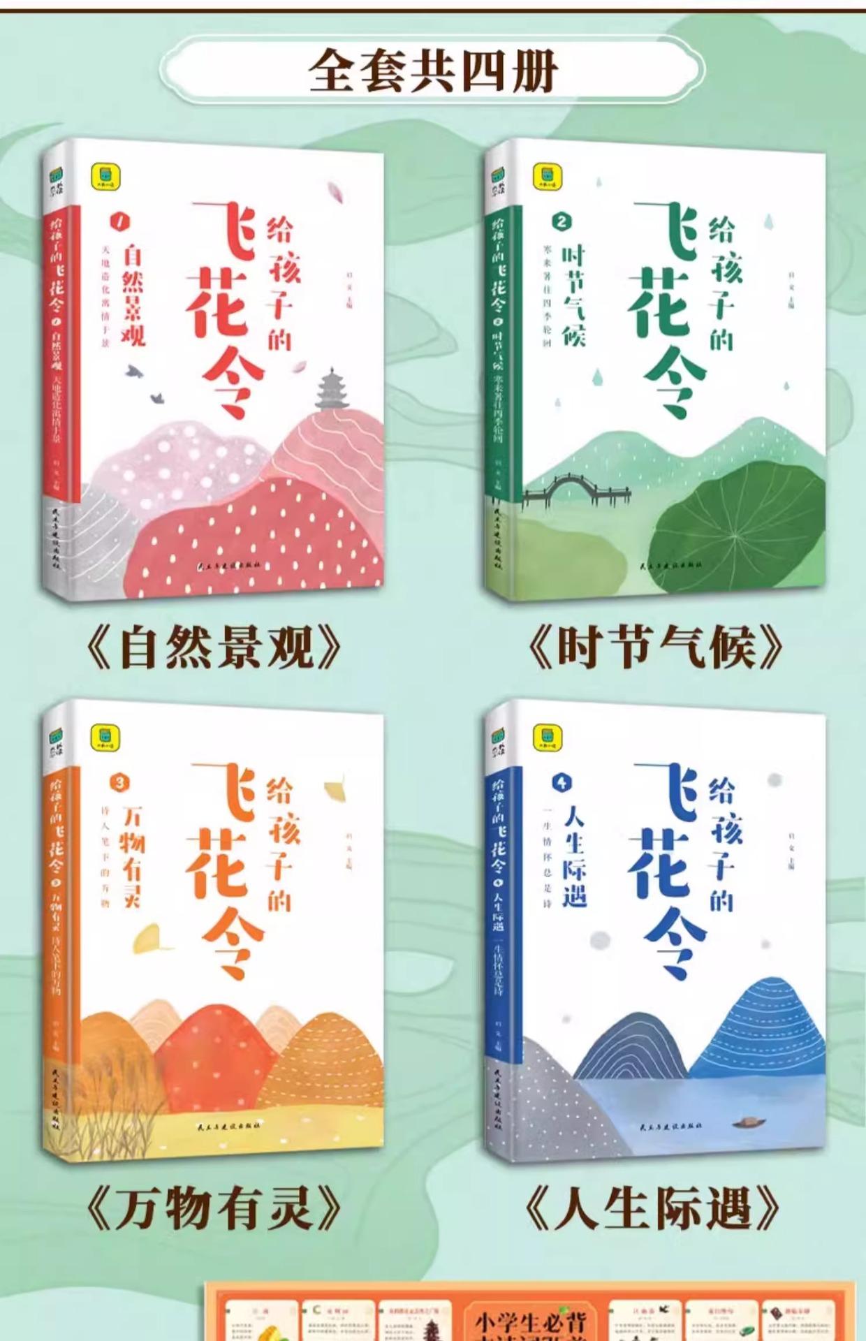 A ordem das flores voadoras para crianças lê poemas na versão colorida de 4 volumes da ordem das flores voadoras para dar às crianças uma apreciação de poemas antigos.