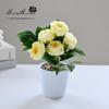 Bonsai Simulado de 5 Botões Grandes de Chá em Vaso com Punho Decoração de Casa Planta Verde em Vaso Arranjo para Hotel Casamento Enfeites de Flores Artificiais