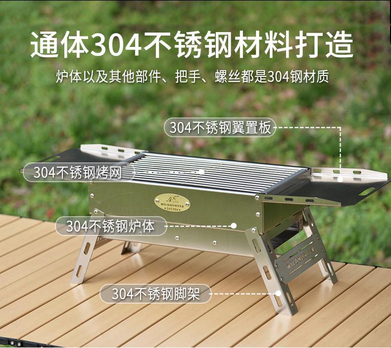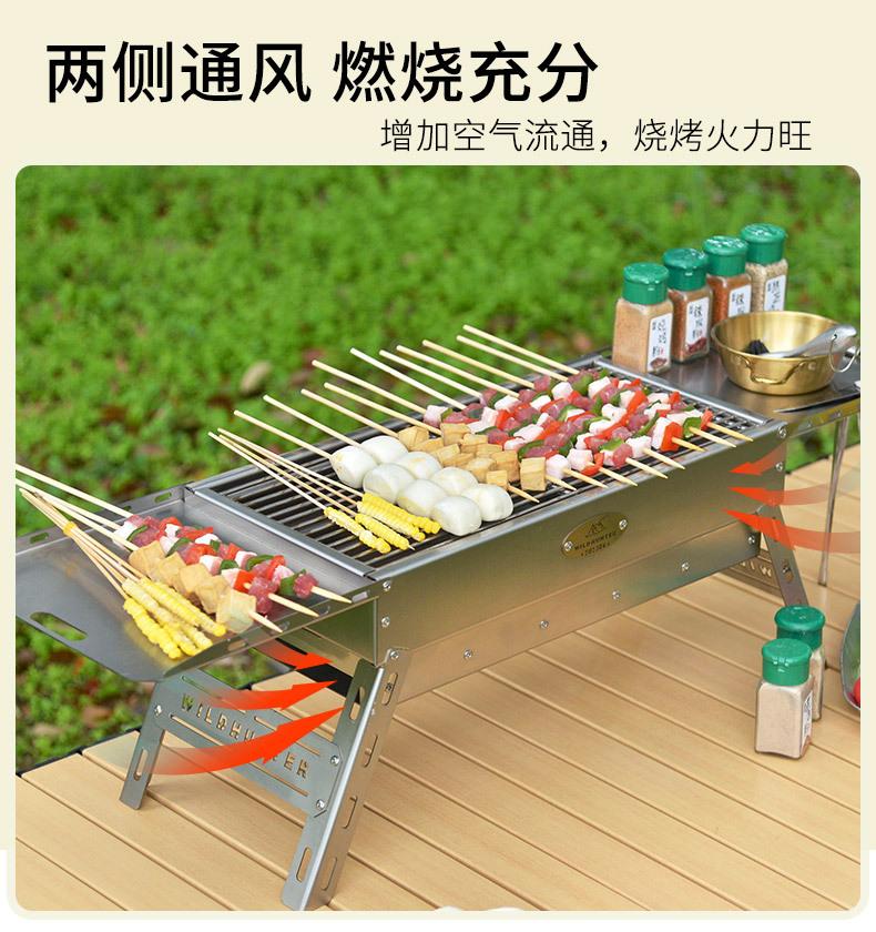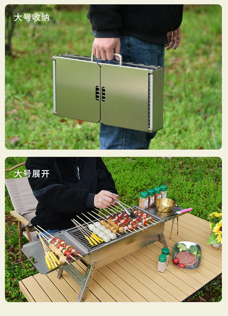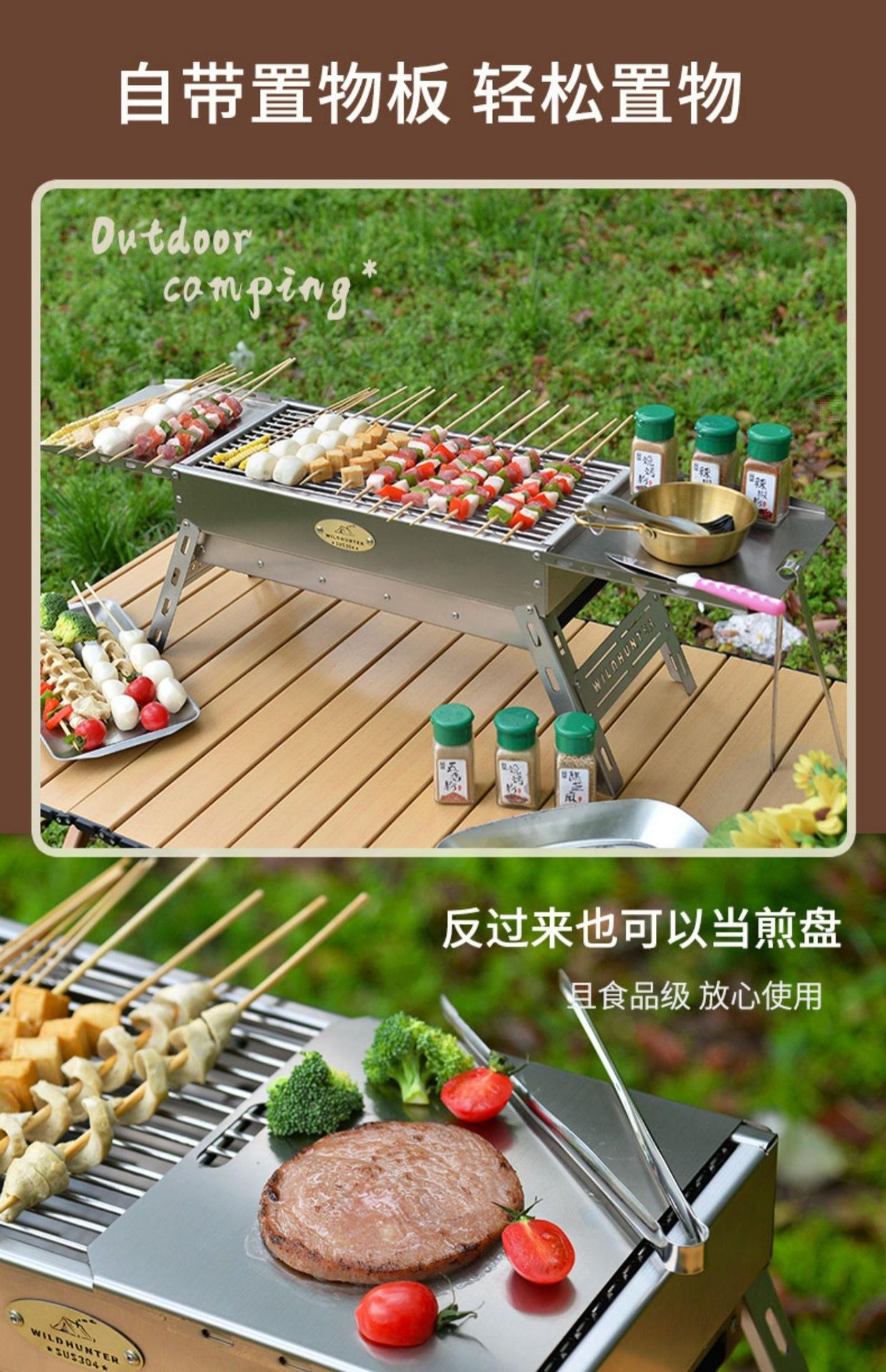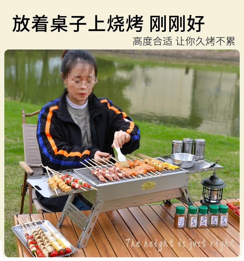 Churrasqueira Dobrável para Exterior Aço Inoxidável 304 Churrasqueira Zibo Churrasqueira a Carvão para Camping Piquenique Conjunto Completo