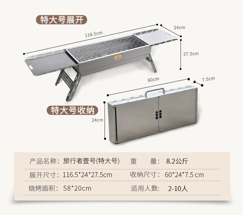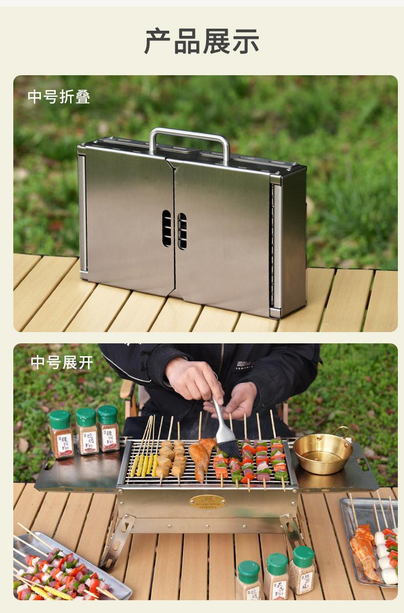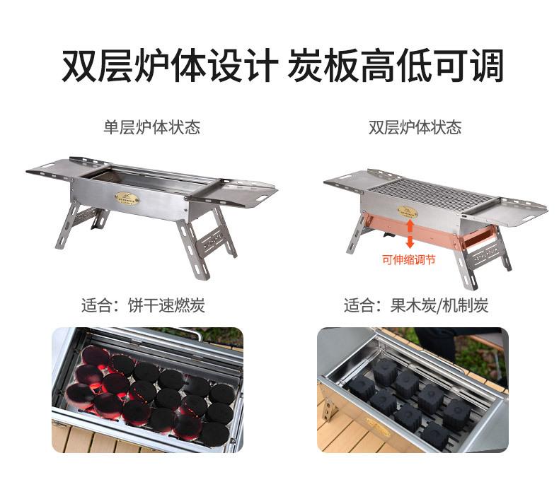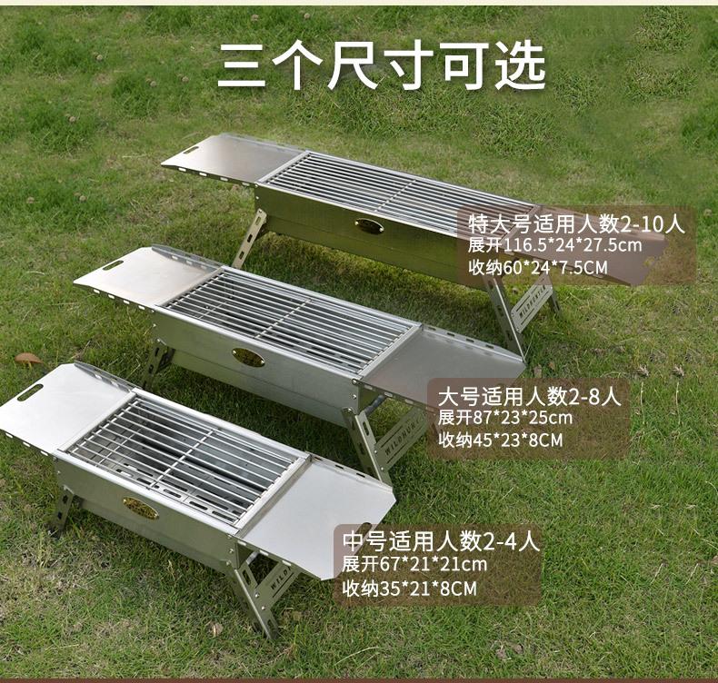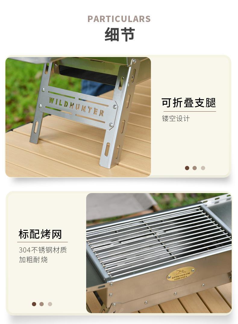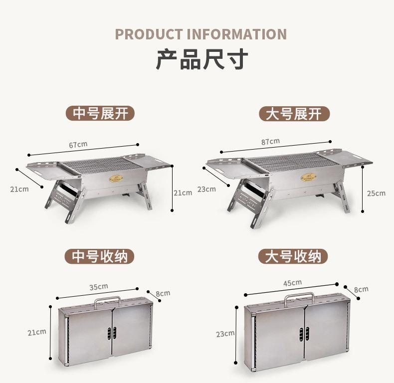 Churrasqueira Dobrável para Exterior Aço Inoxidável 304 Churrasqueira Zibo Churrasqueira a Carvão para Camping Piquenique Conjunto Completo