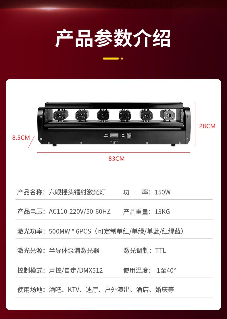 Six-eye shaking head laser light (300mw single red), Six-eye shaking head laser light (300mw single green), Si...