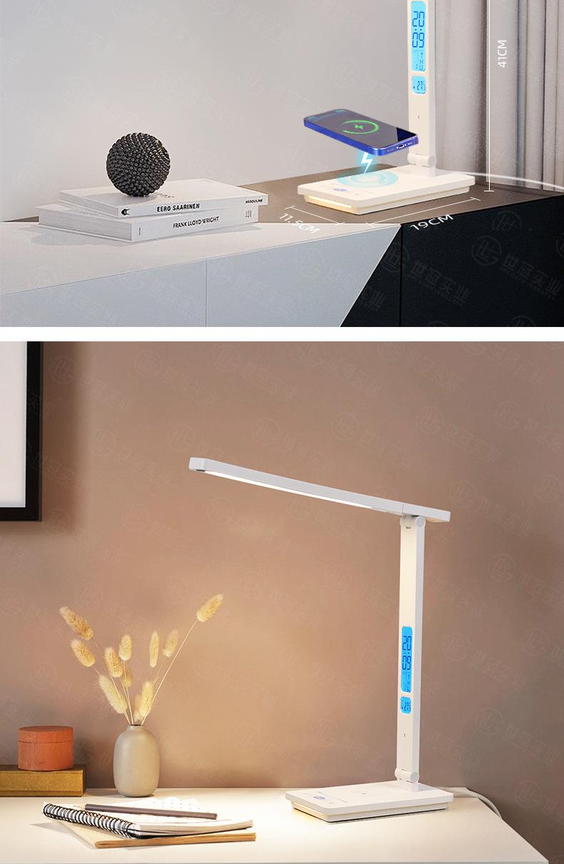 Lâmpada de Mesa Personalizada Amazon Nova Calendário Despertador Carregamento Sem Fio Rotativa Dobrável Toque Ajustável 5 Temperaturas de Cor Lâmpada LED de Proteção para os Olhos