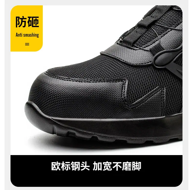 Sapatos de segurança de liquidação sazonal Anti-esmagamento Anti-perfuração Resistente ao desgaste Amortecimento de choque Botão Sapatos de trabalho Moda Sapatos de segurança transfronteiriços
