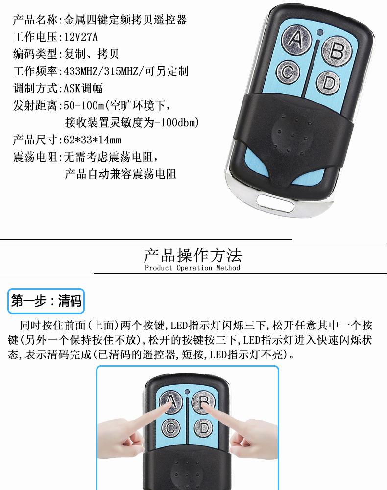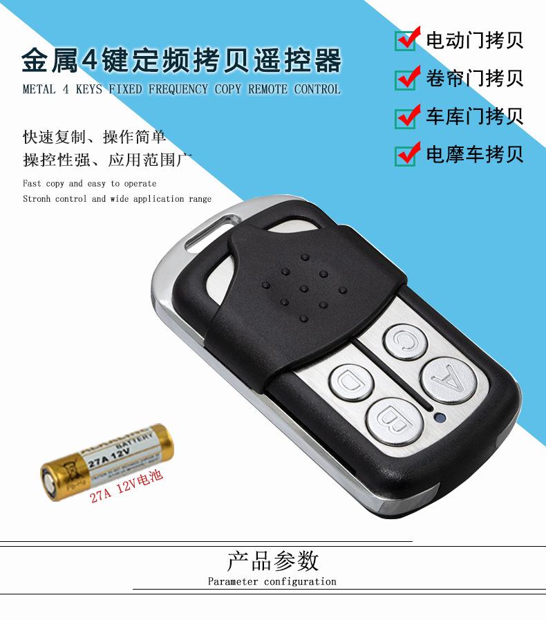 Controle Remoto Sem Fio de Metal com Quatro Botões para Cópia Porta de Garagem Porta de Enrolar Universal Cópia Controle Remoto Sem Fio 433m
