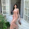 Vestido Floral Floral com Amarração no Peito e Estilo BM para Mulheres Bm Slim-Fit Slimming Midi Dress Plus Long Dress