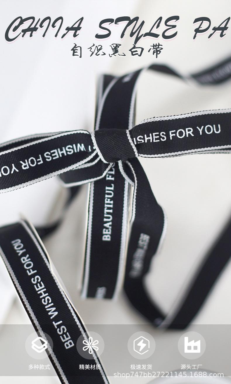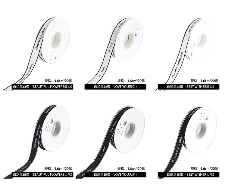 Self-woven black and white ribbon (BEST WISHER) black; ribbon