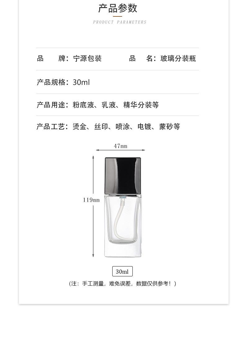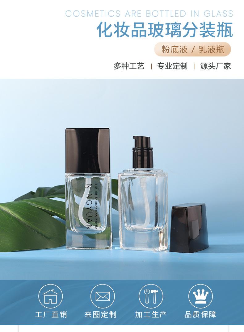 30ml Flat Square Press Pump Loção Frasco Base Frasco BB Creme Isolamento Creme Cuidados Com A Pele Material Saco Vidro Frasco Vazio