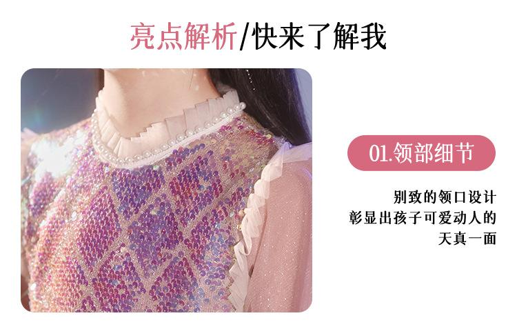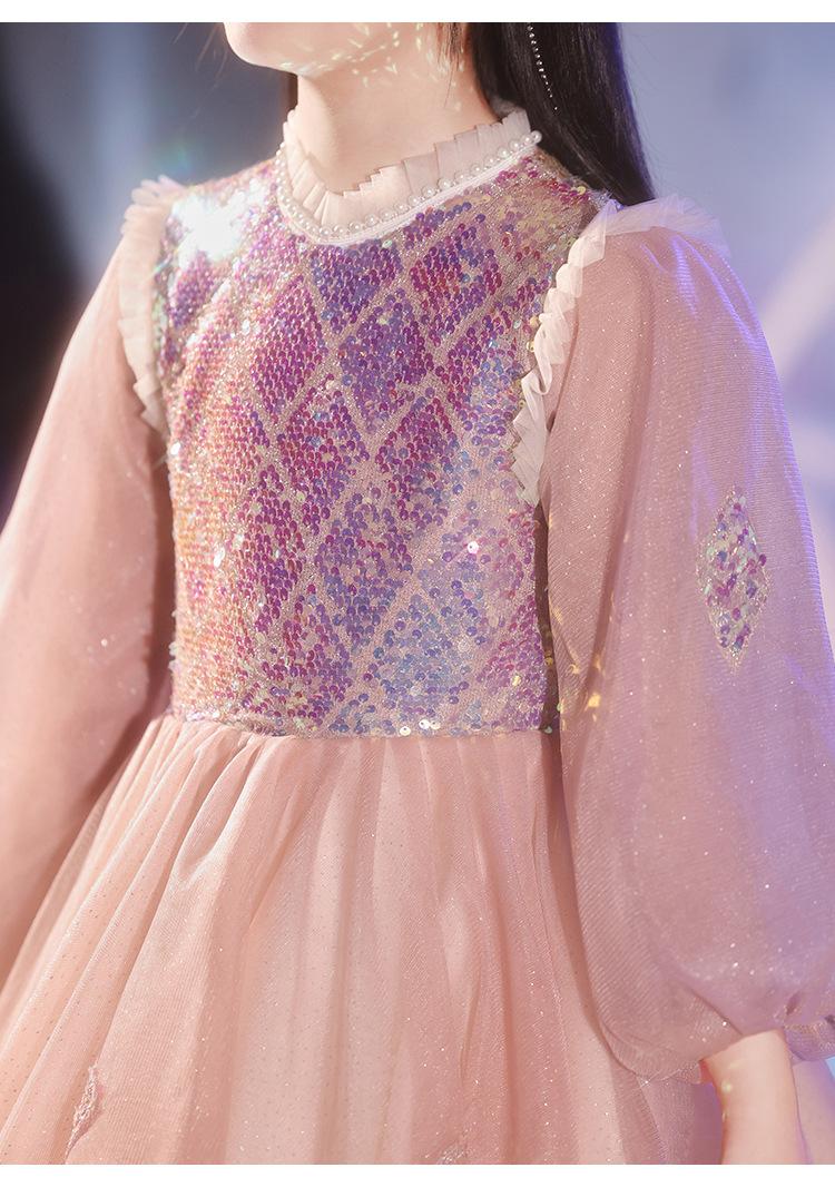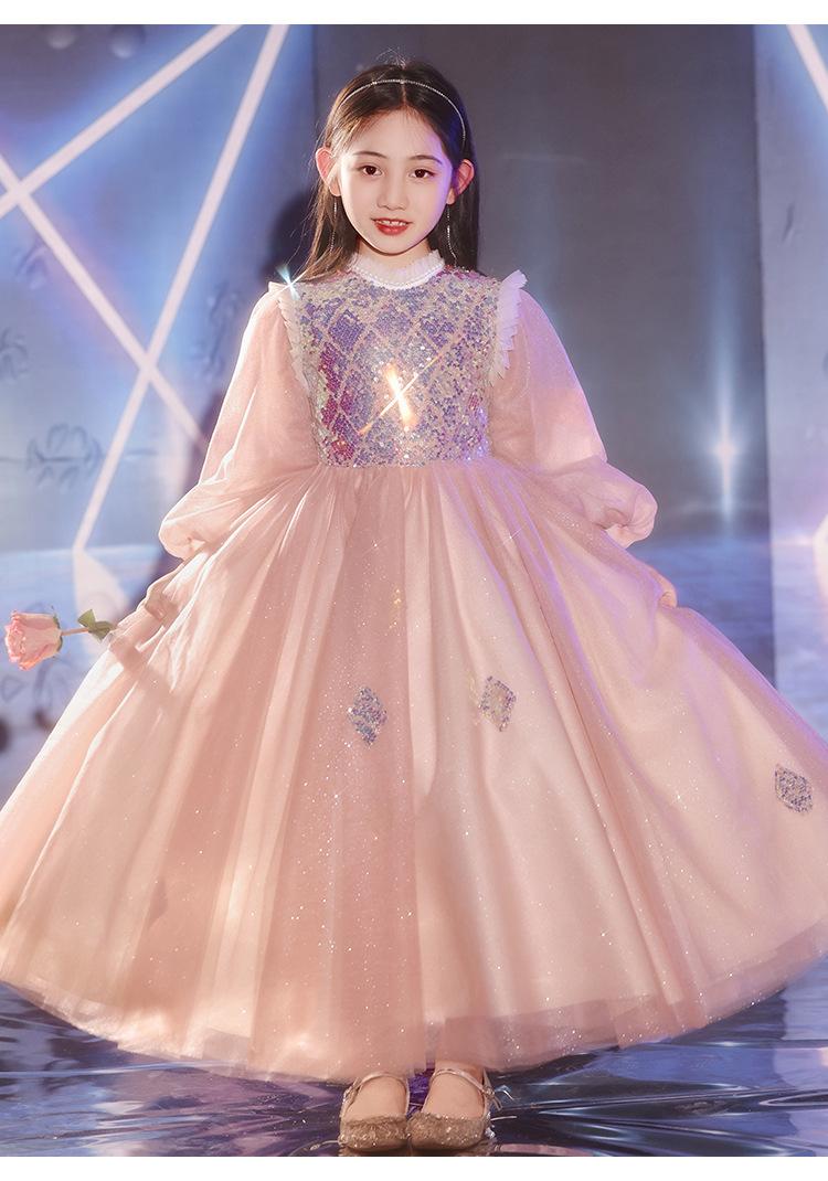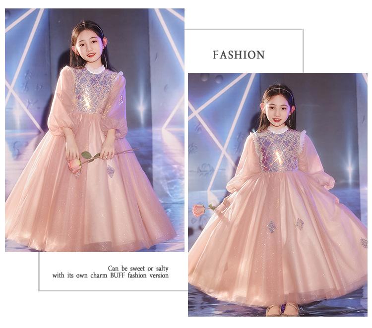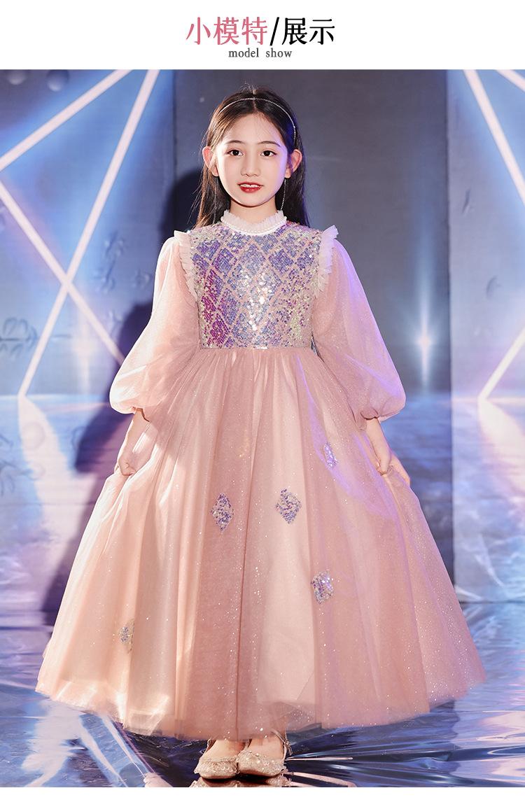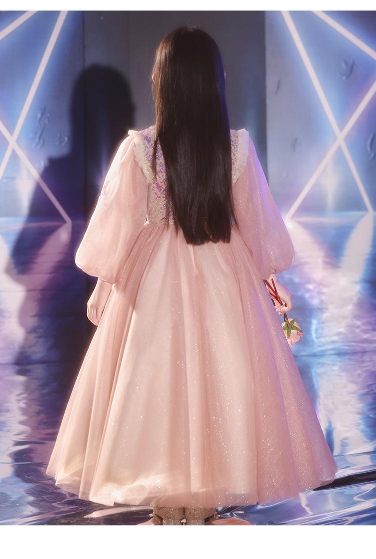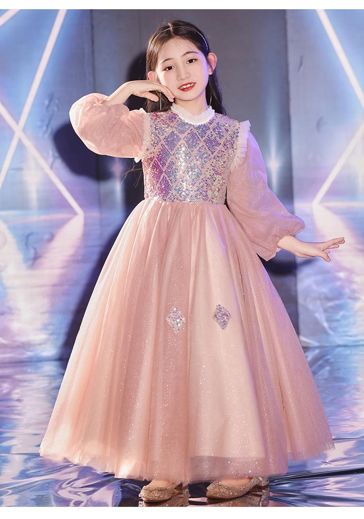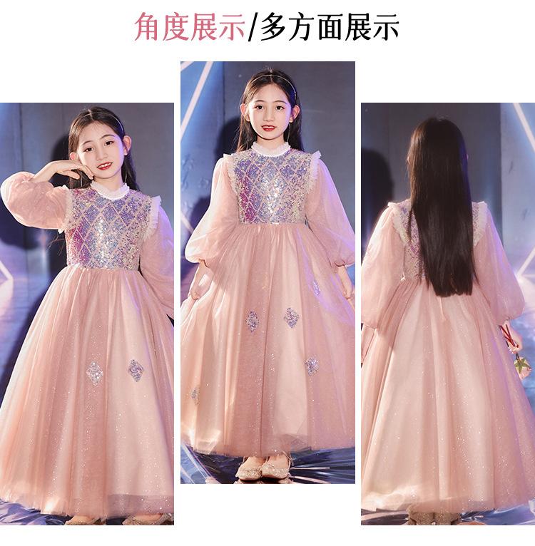 Vestido de Noite Infantil Transfronteiriço de Manga Comprida Inverno Vestido de Dama de Honra Casamento Menina de Dez Anos Aniversário Vestido de Princesa Apresentação de Piano de Anfitriã
