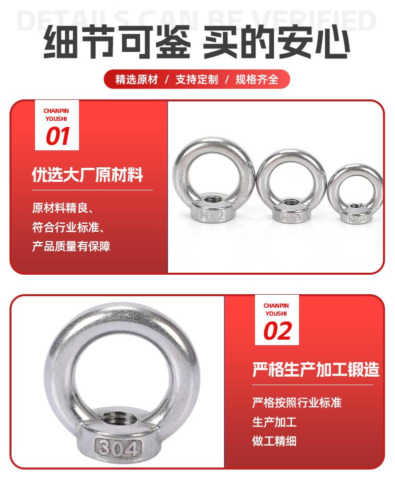 Compre Venda por atacado de fábrica 304 porca de olho de aço inoxidável porca de anel de parafuso de olho marinho de elevação de porca de anel no atacado no Joom.pro