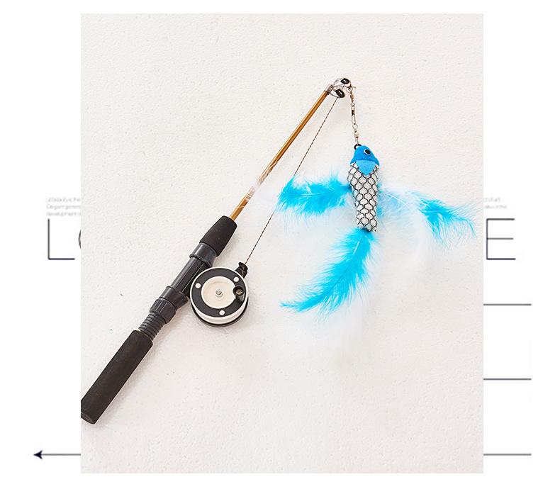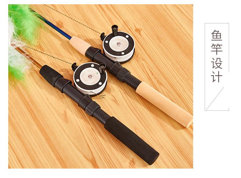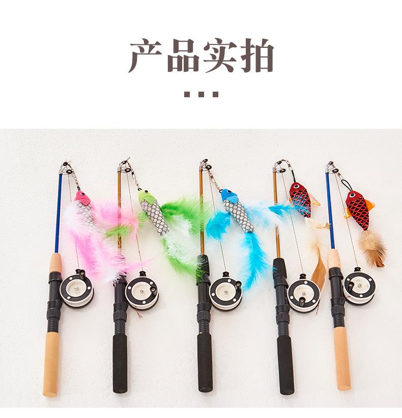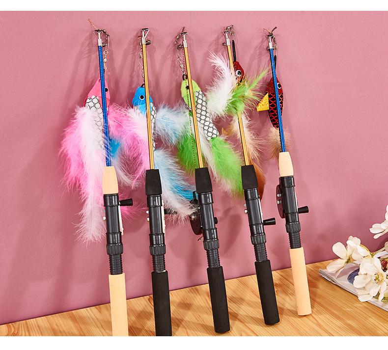 Brinquedo para animais de estimação Tipo de peixe Vara de pesca retrátil Pena Diversão Brinquedo para gatos Diversão Desintoxicante Vara de pesca Vara de gato Brinquedo para animais de estimação