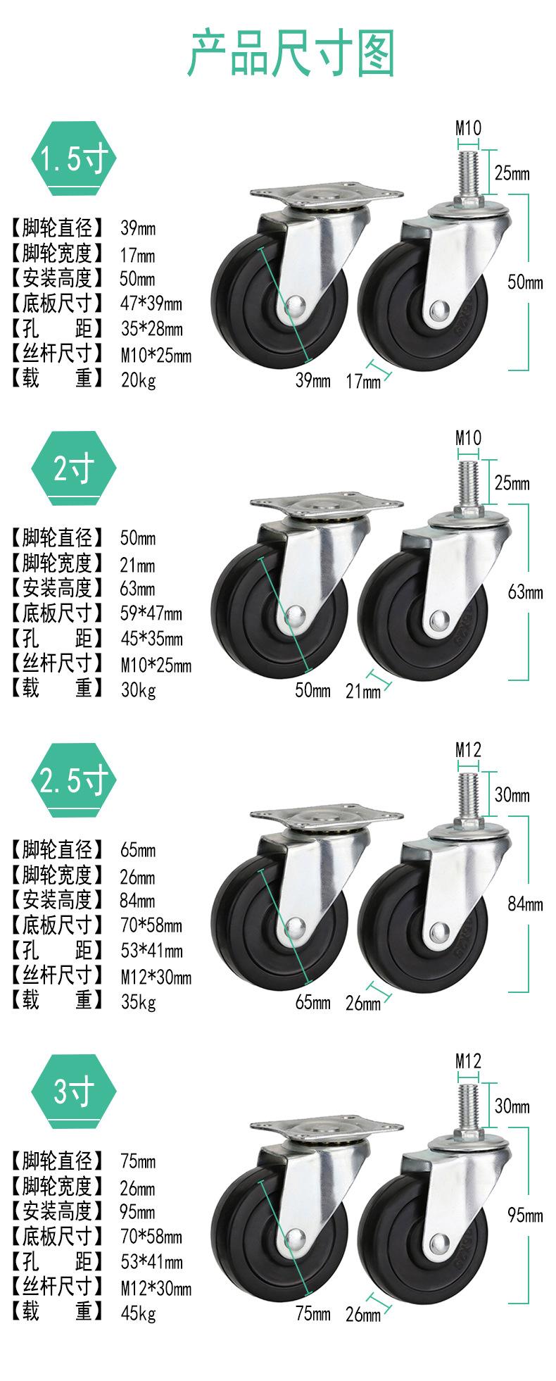Rodas universais de borracha leve por atacado de fábrica 1,5 polegadas 2 polegadas rodízios de 3 polegadas rodas industriais direcionais de fundo plano rodas móveis