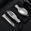 Mini Multifuncional Dobrável Ao Ar Livre Camping Aço Inoxidável Combinação Portátil terno Faca Dobrável, Garfo e Colher Talheres