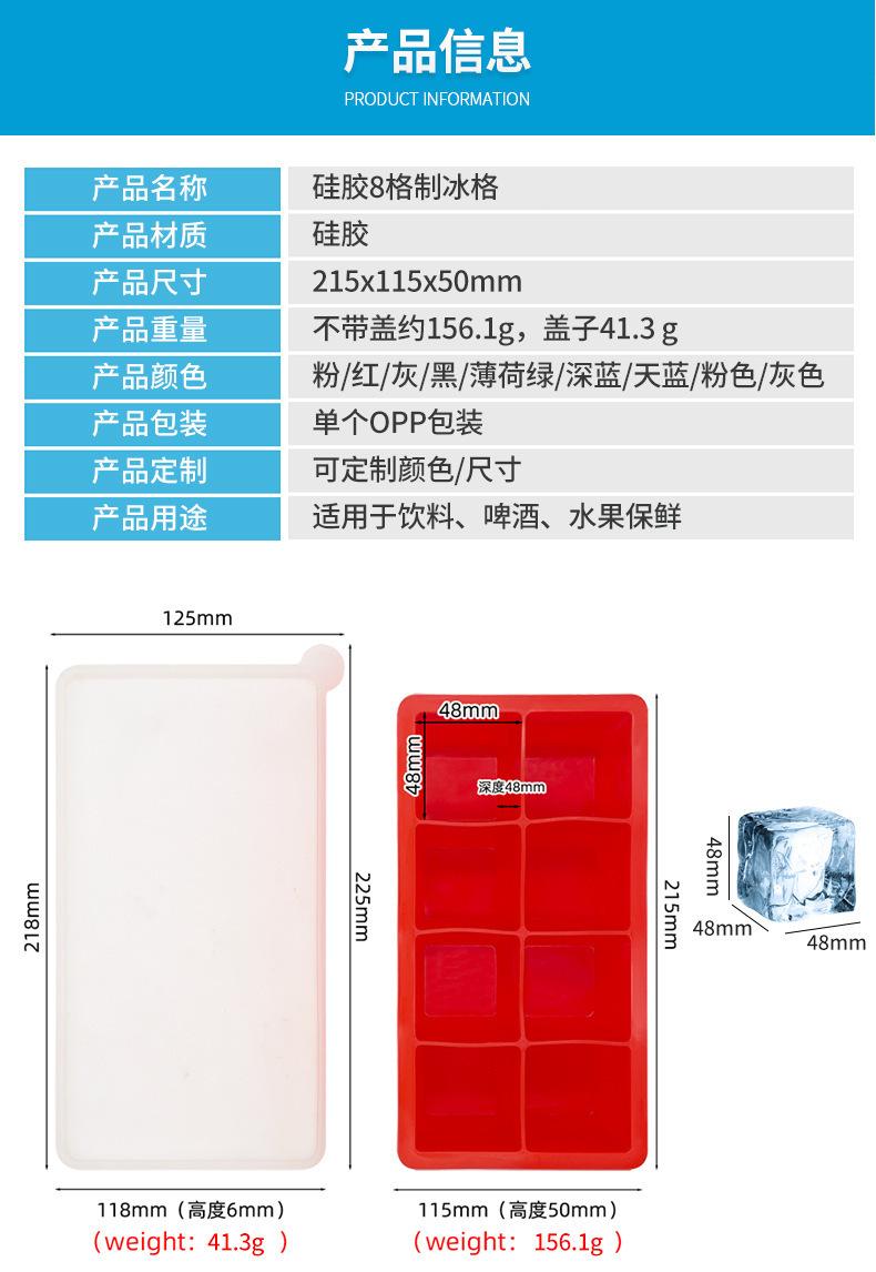 8-compartment ice tray with lid 21.5*11.5*5.5cm, 8-compartment ice tray without lid 21.5*11.5*5.5cm