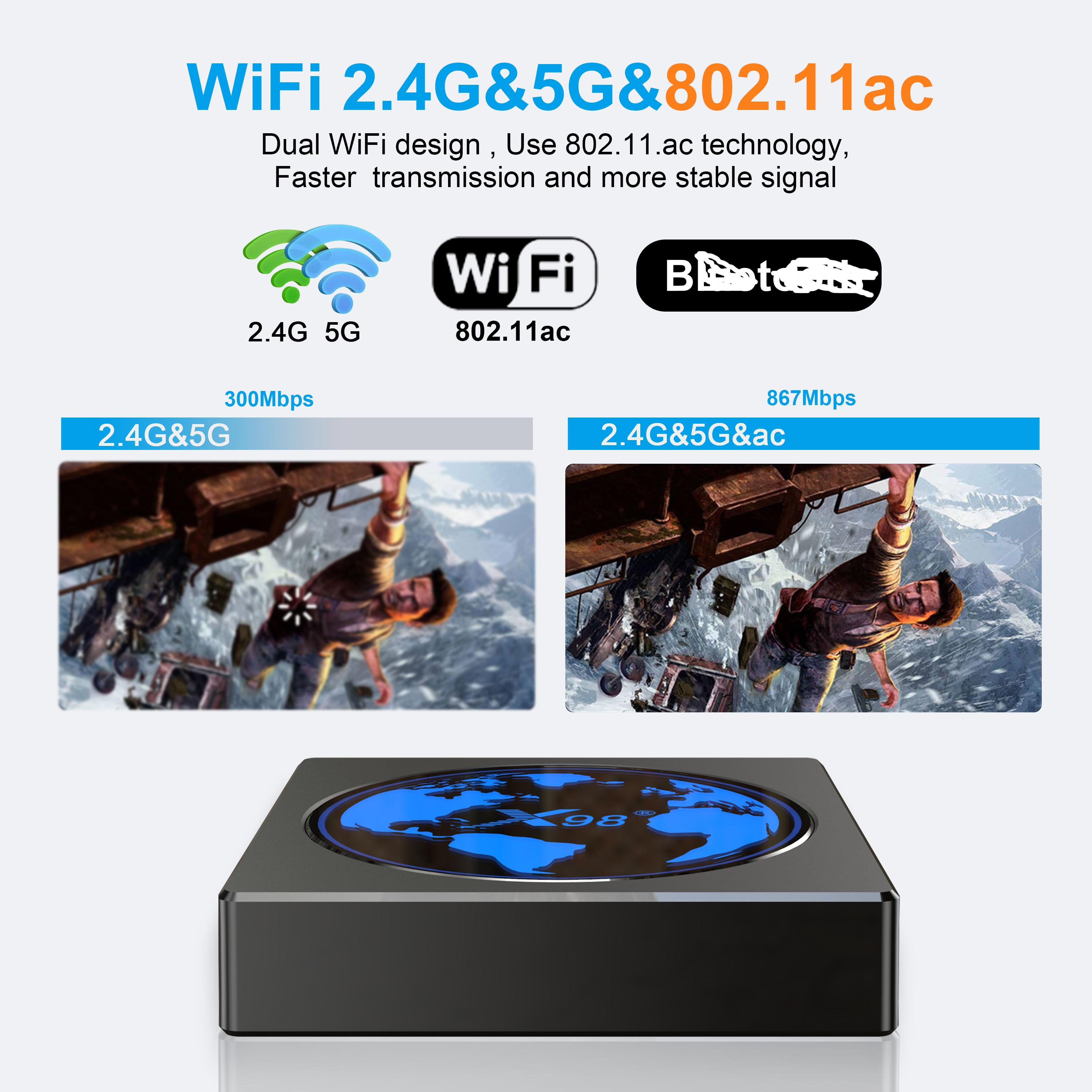 X98 Mini S905W2 Caixa de TV Android 11 4g 64Gb Wifi Duplo Bt H.265