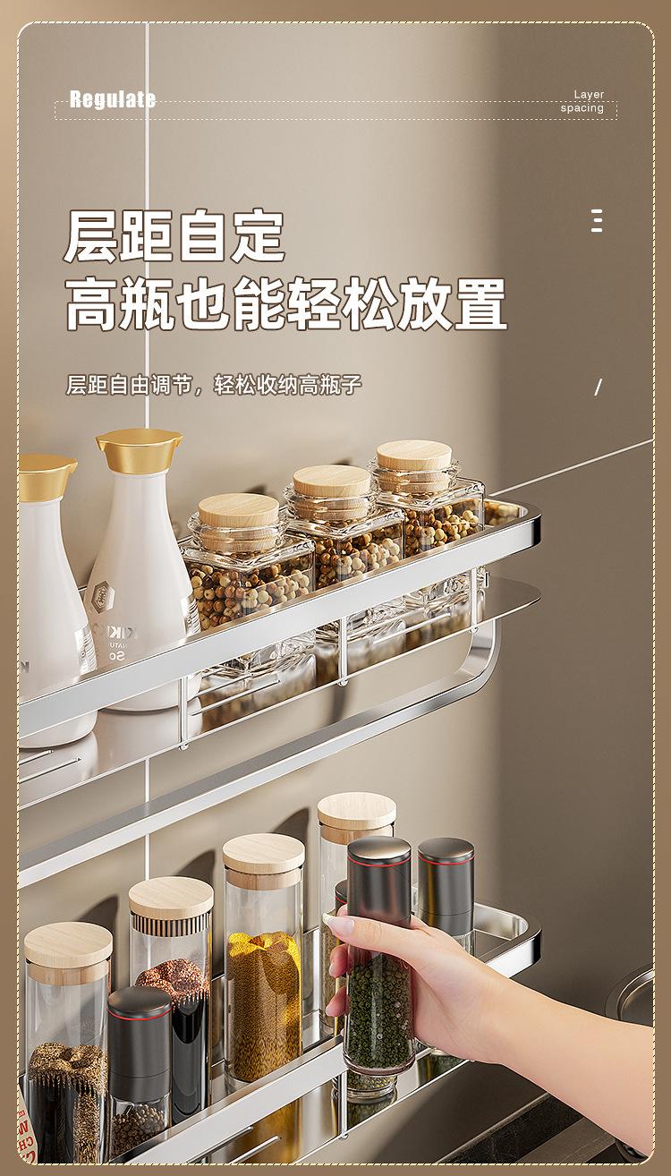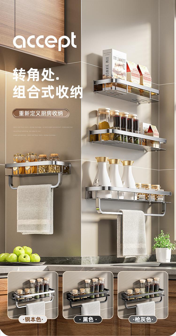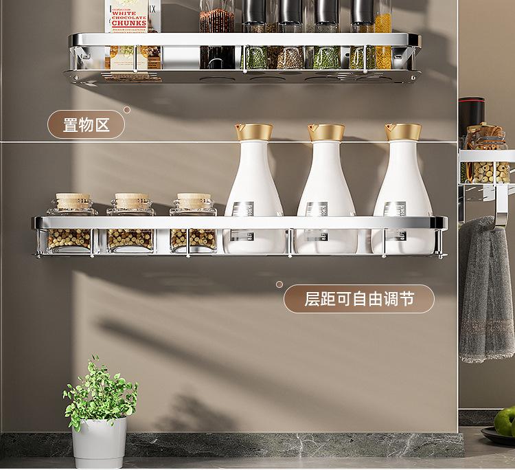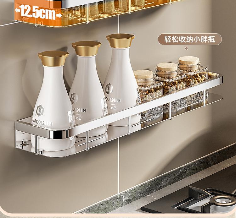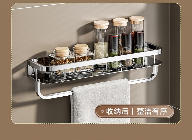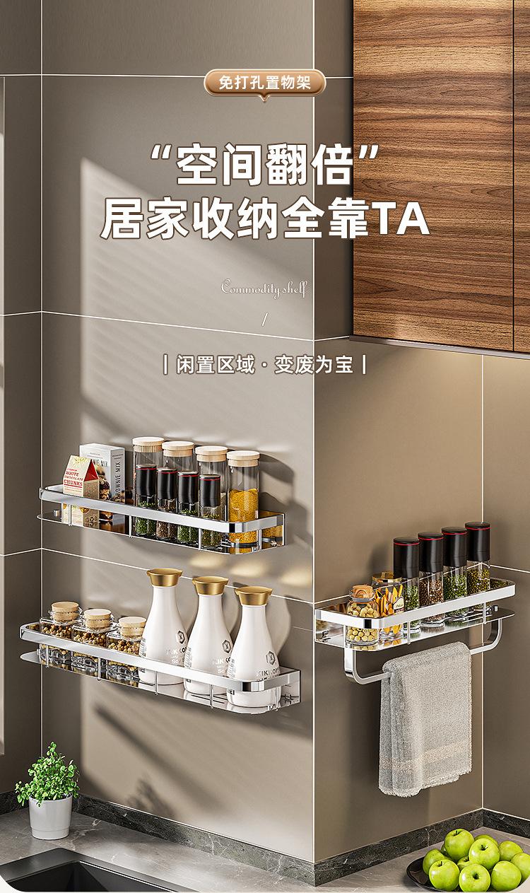 Rack de armazenamento de aço inoxidável montado na parede suprimentos de cozinha rack de tempero não perfurado banheiro banheiro prateleira de armazenamento removível