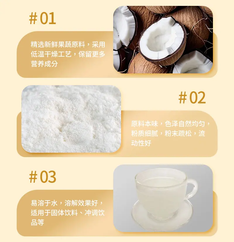 Amostra Grátis Pó de Coco Cor Uniforme Pó de Fruta de Coco Solúvel em Água Ingrediente para Bebida Sólida Extrato de Coco Em Estoque
