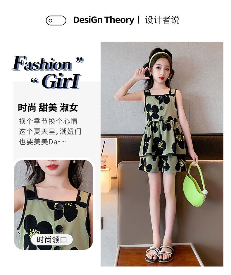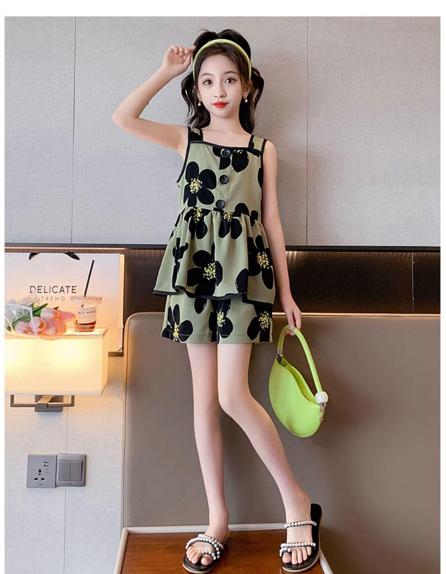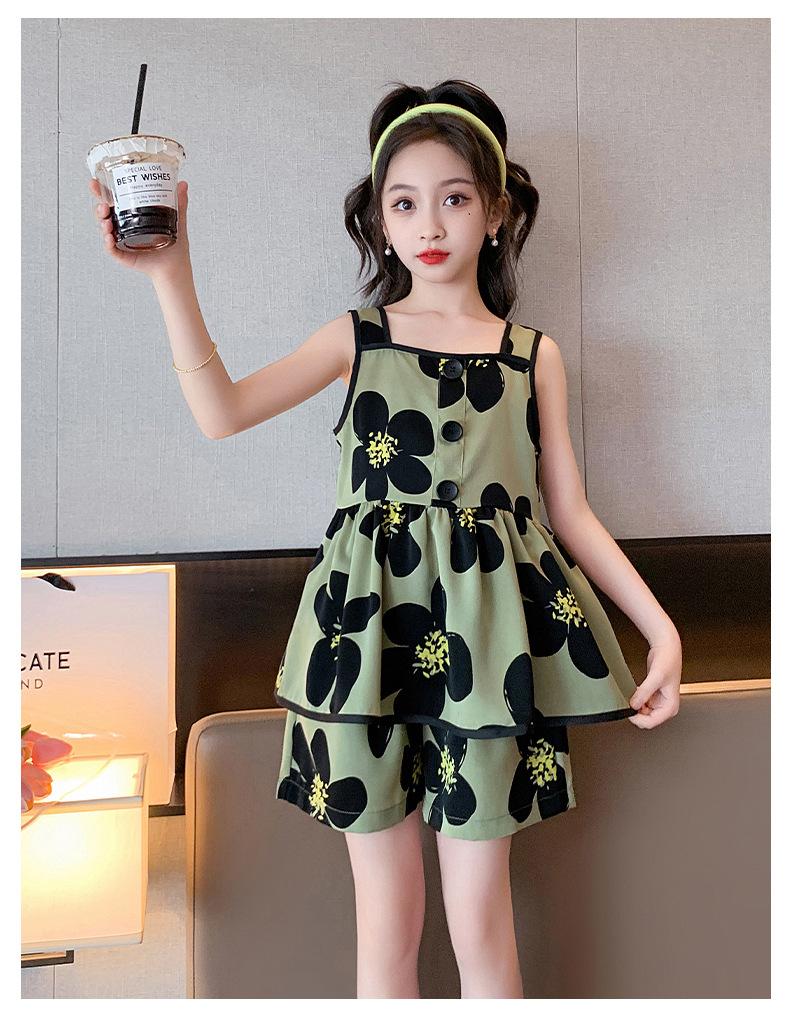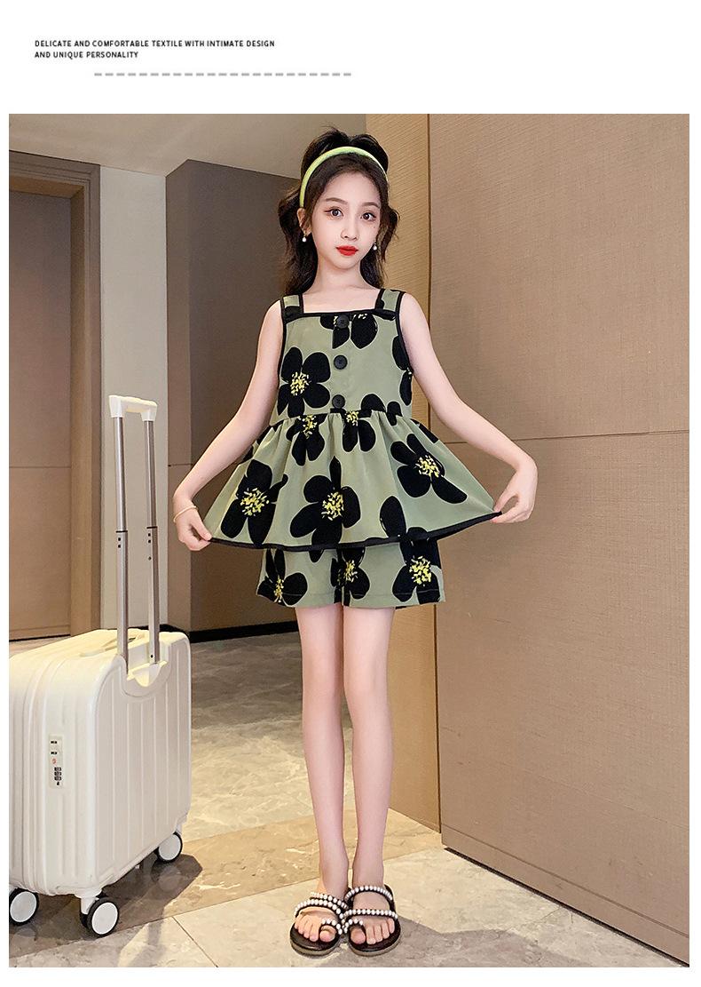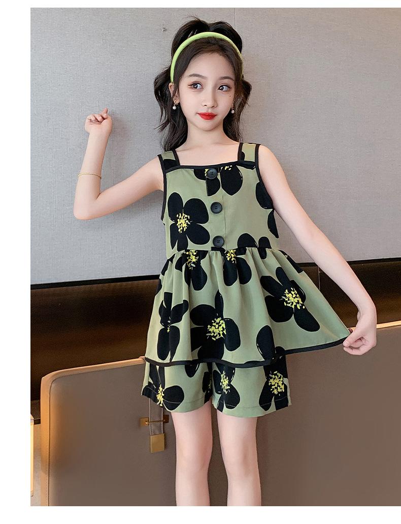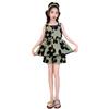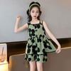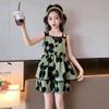 Vestido de Verão da Moda para Meninas 2024 Verão Novo Moda Infantil Média e Grande Vestido Coreano Floral de Alças