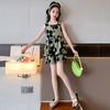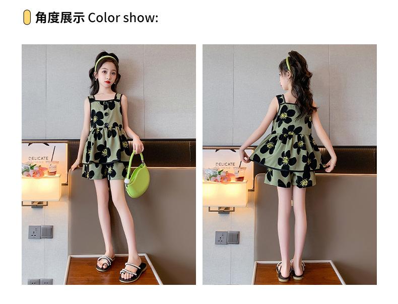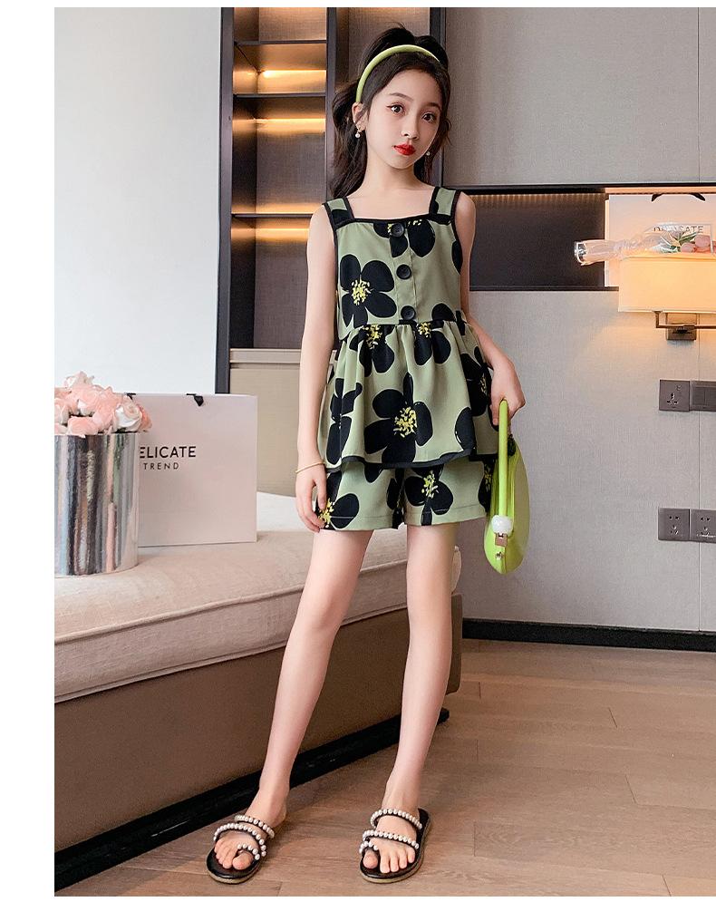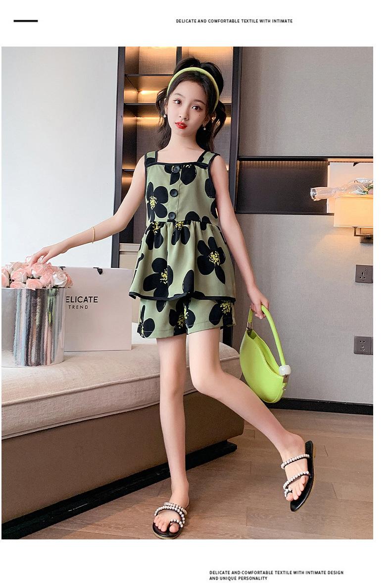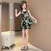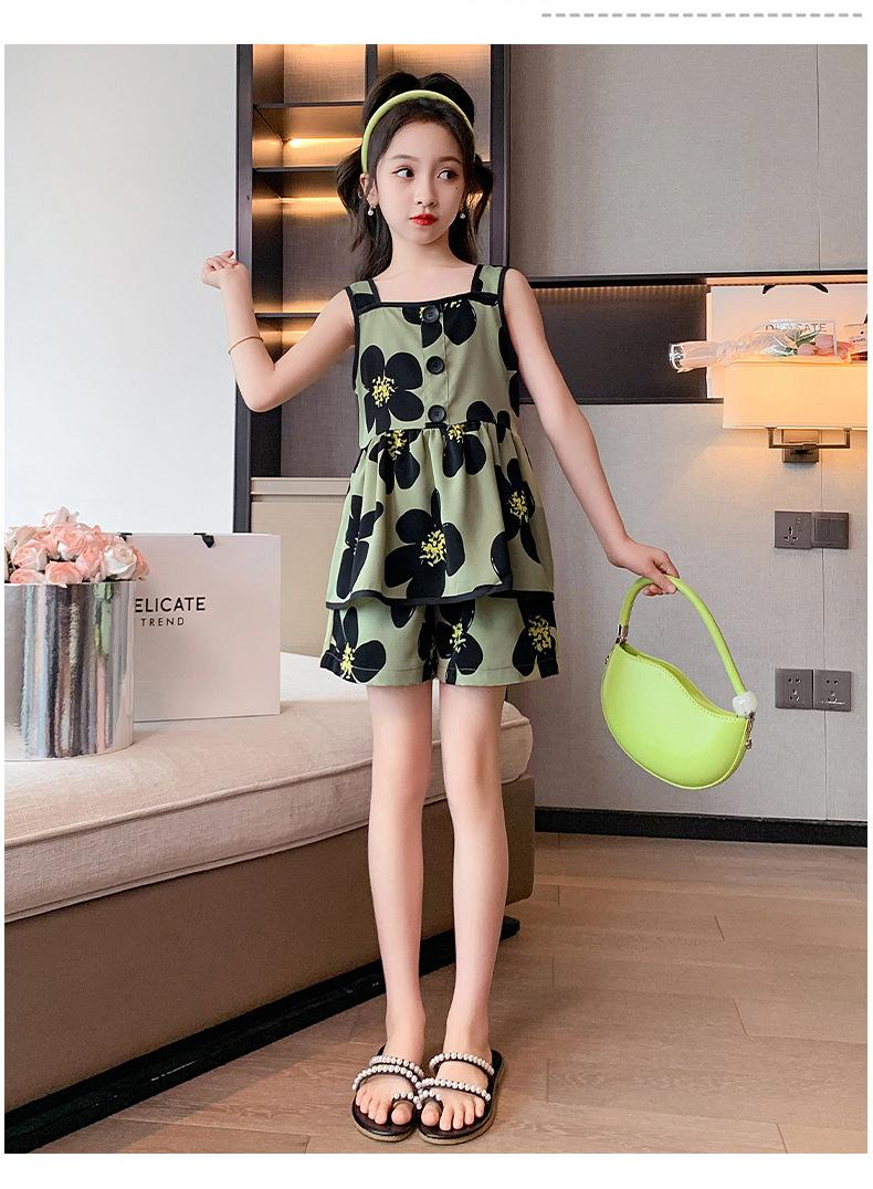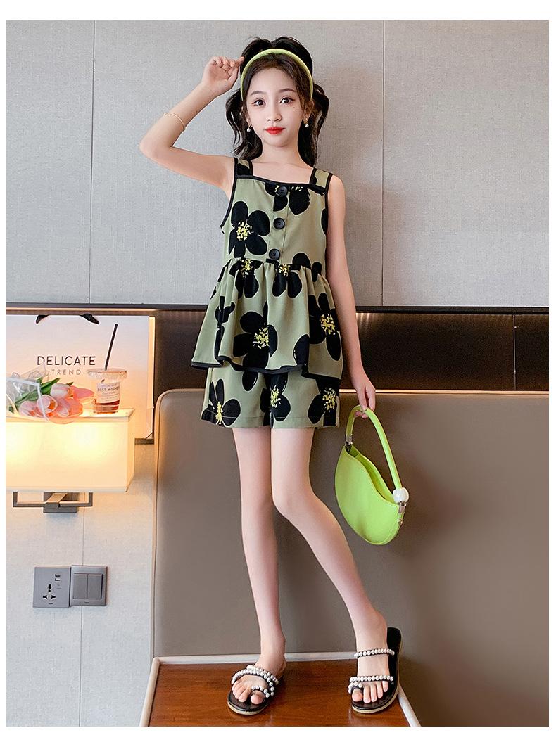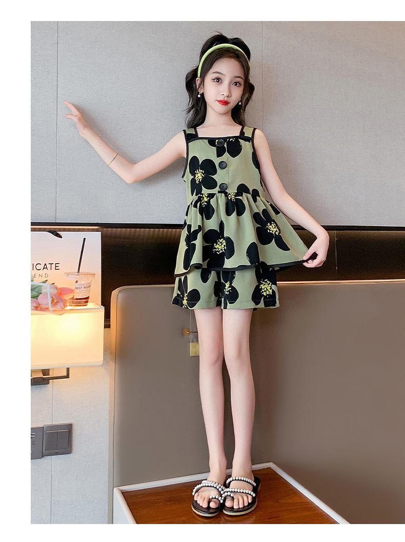 Vestido de Verão da Moda para Meninas 2024 Verão Novo Moda Infantil Média e Grande Vestido Coreano Floral de Alças
