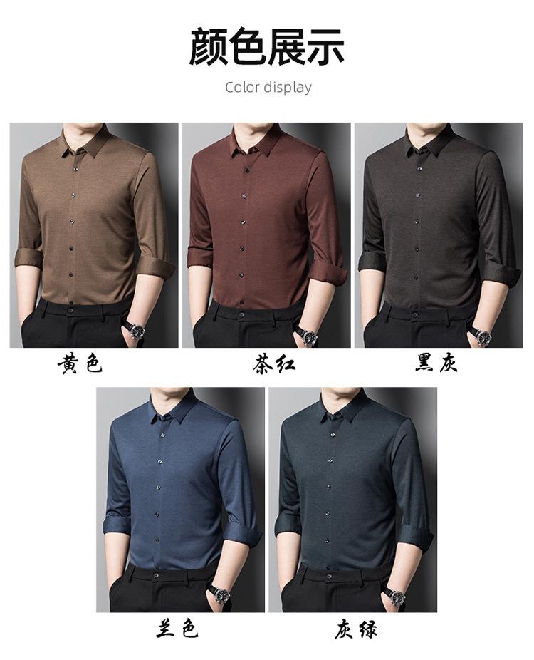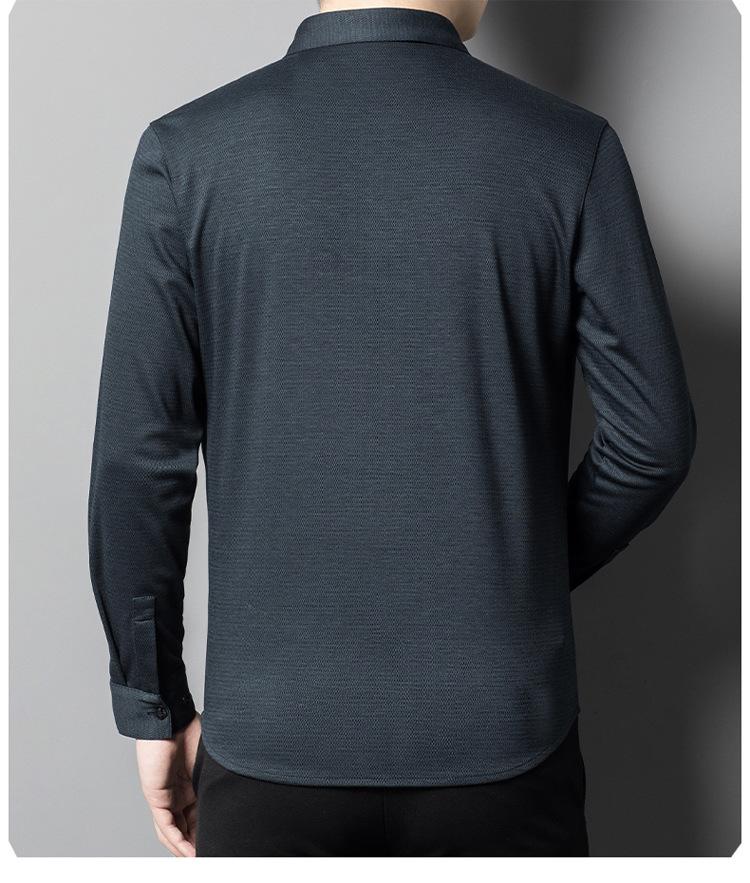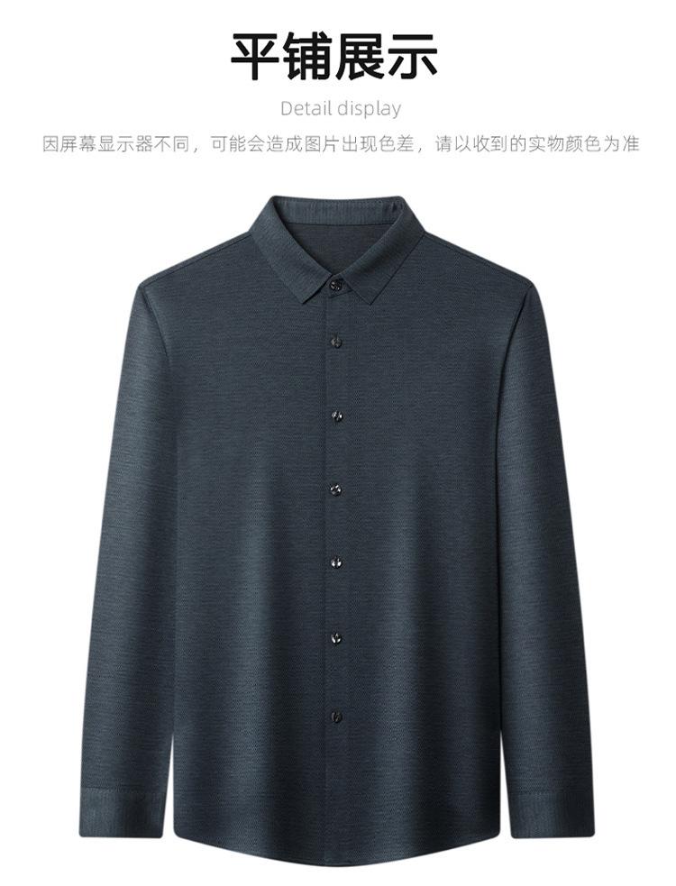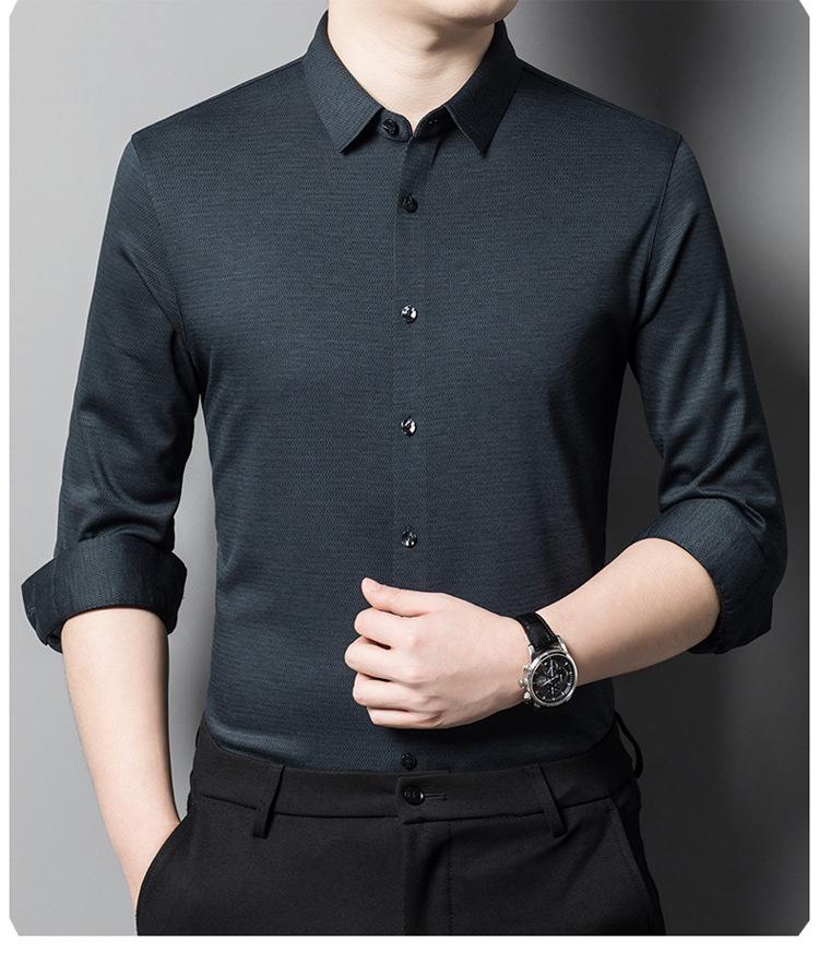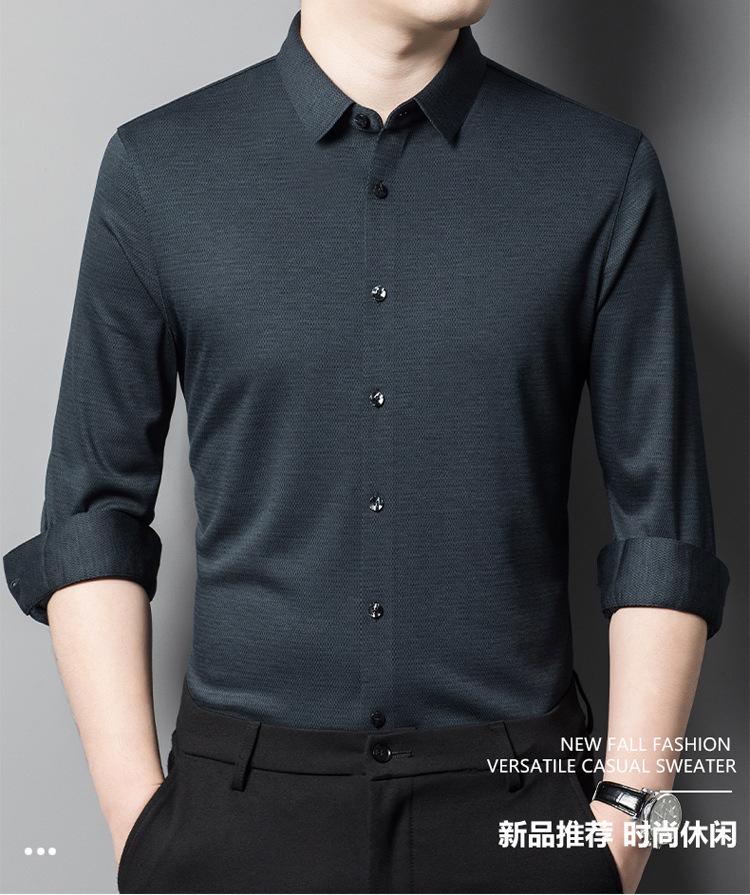 Camisa masculina de caxemira de manga comprida, nova, outono e inverno, lapela, cor sólida, verde, meia-idade, casual, negócios, não passável, camisa de alta qualidade
