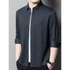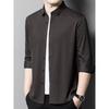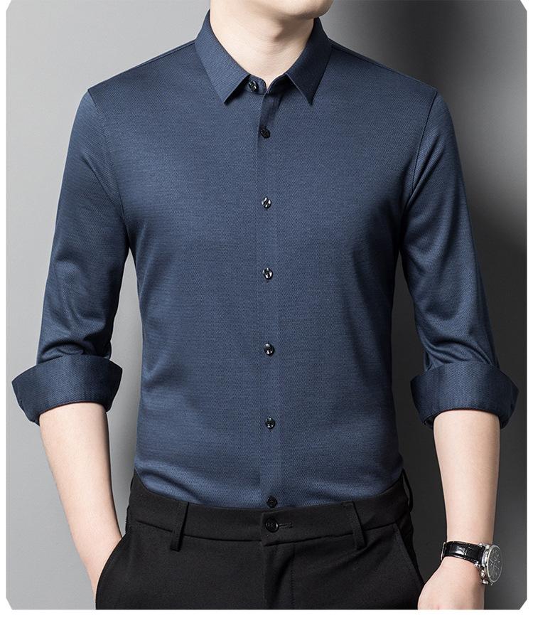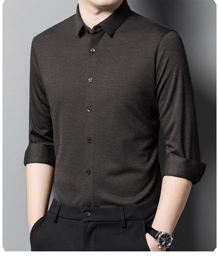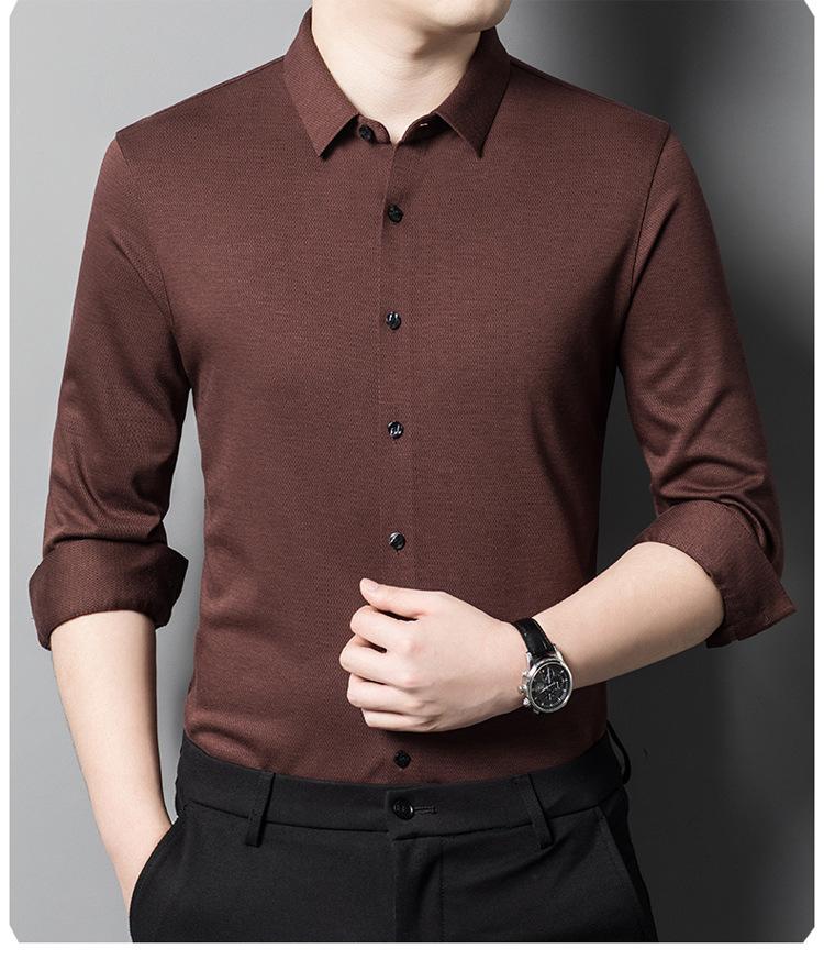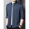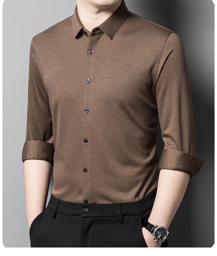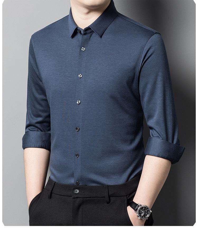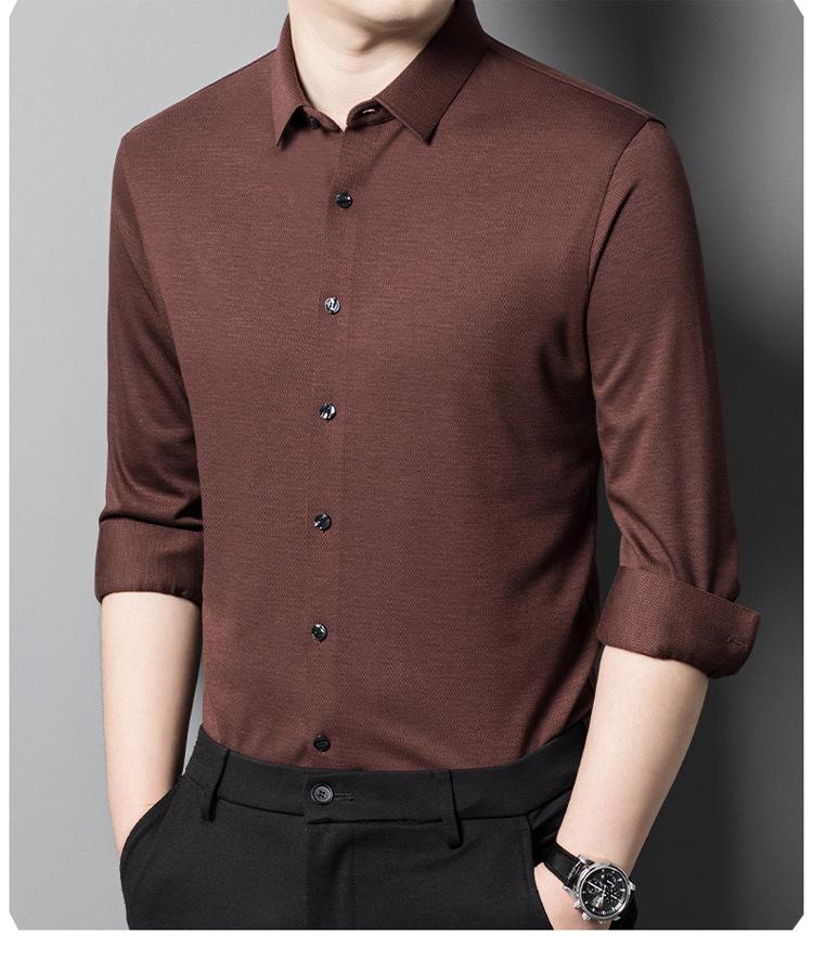 Camisa masculina de caxemira de manga comprida, nova, outono e inverno, lapela, cor sólida, verde, meia-idade, casual, negócios, não passável, camisa de alta qualidade
