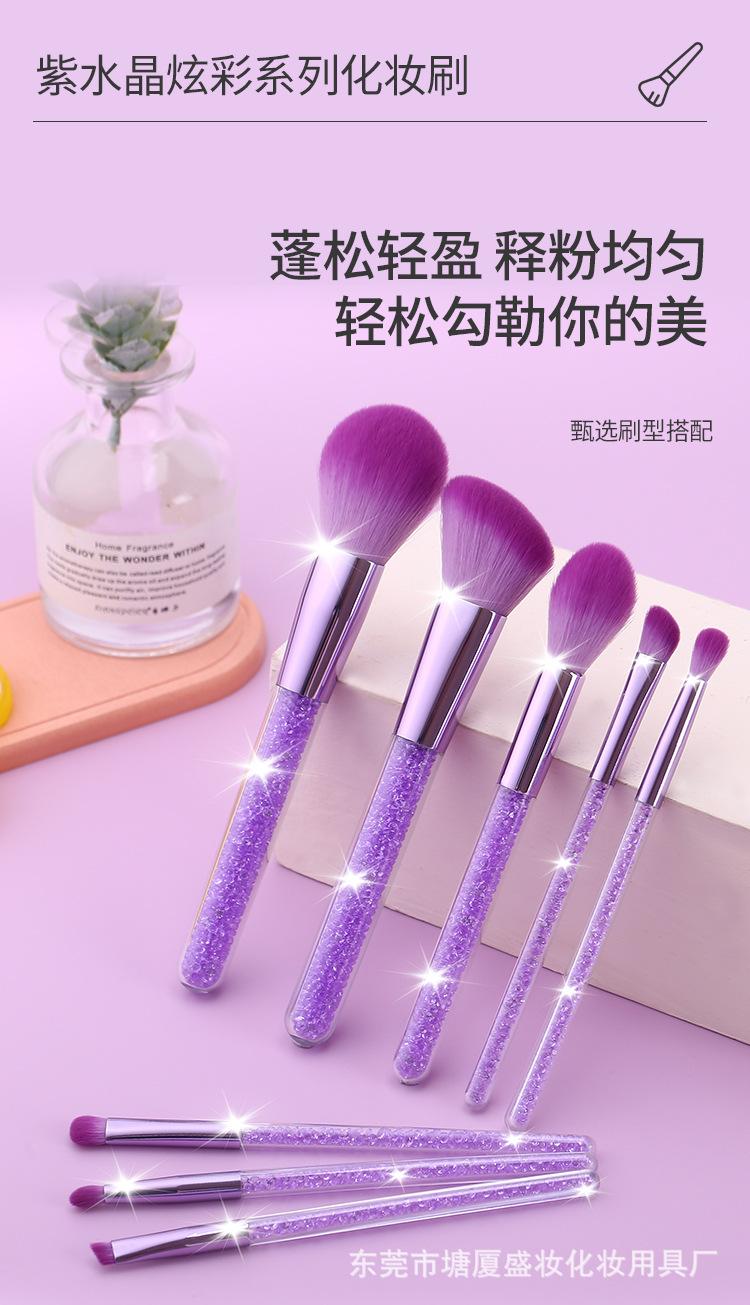 8 colorful amethyst makeup brushes, 8 colorful amethyst makeup brushes + brush barrel, Powder Brush, Bevel rep...