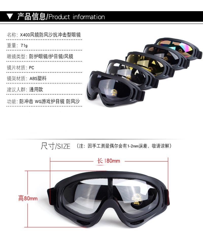Óculos de esqui X400 óculos de proteção contra respingos de imitação óculos de esportes ao ar livre para motocicleta óculos de proteção contra vento e areia