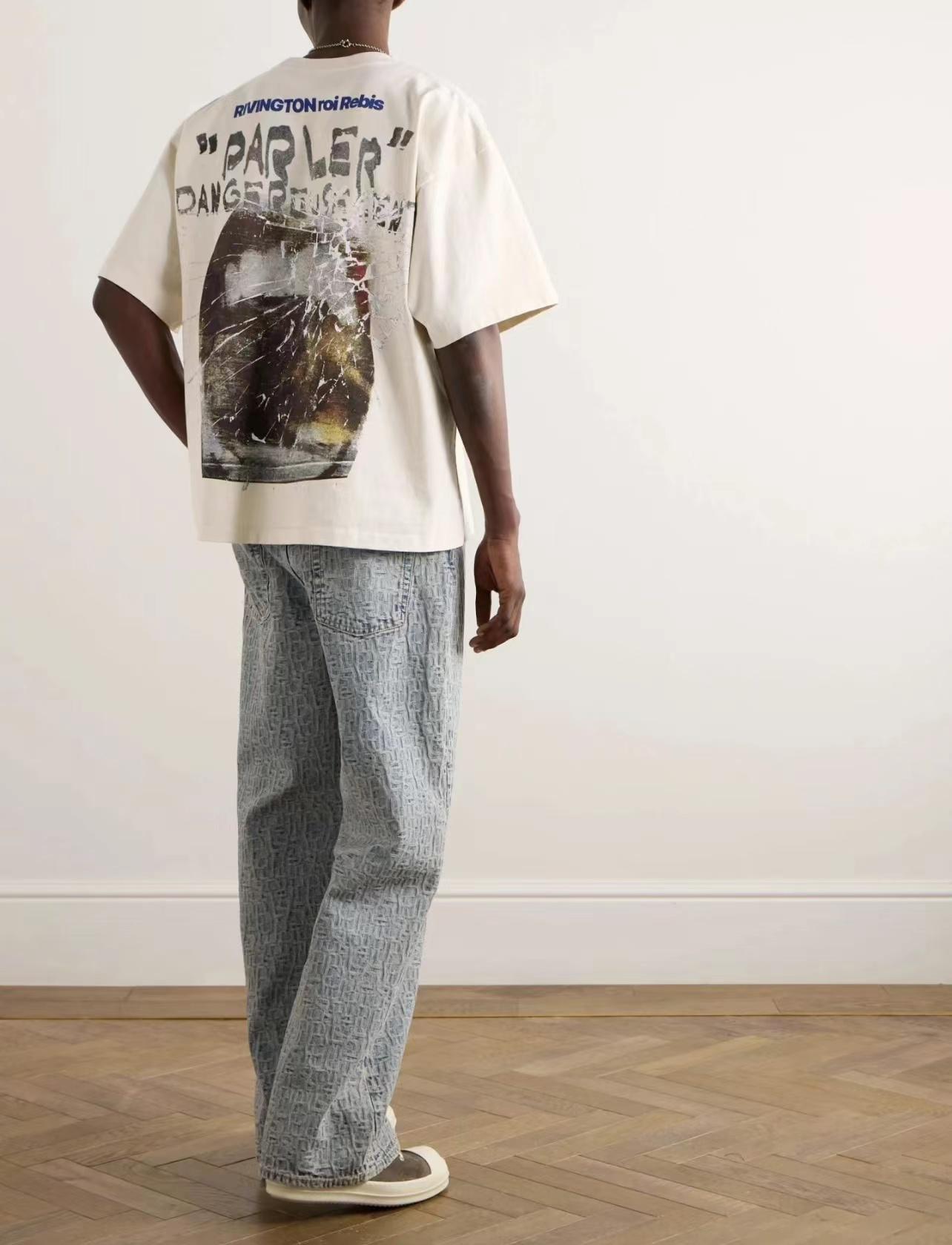 RRR123 Heavy American Style High Street Loose Moda Masculina e Feminina Casais Camiseta de Manga Curta Moda Algodão Carta Solta em estoque