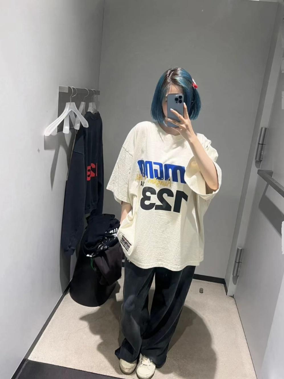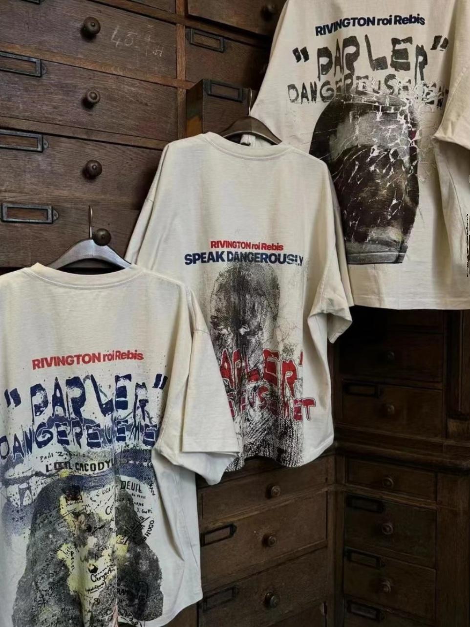 Compre RRR123 Heavy American Style High Street Loose Moda Masculina e Feminina Casais Camiseta de Manga Curta Moda Algodão Carta Solta em estoque no atacado no Joom.pro