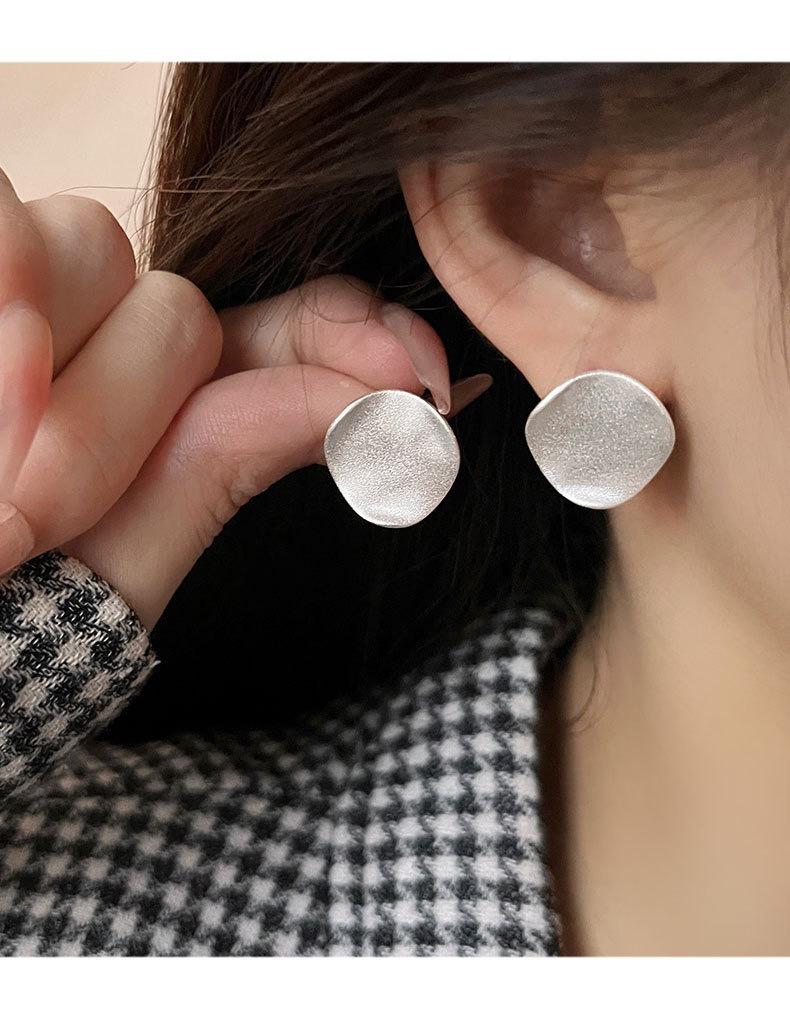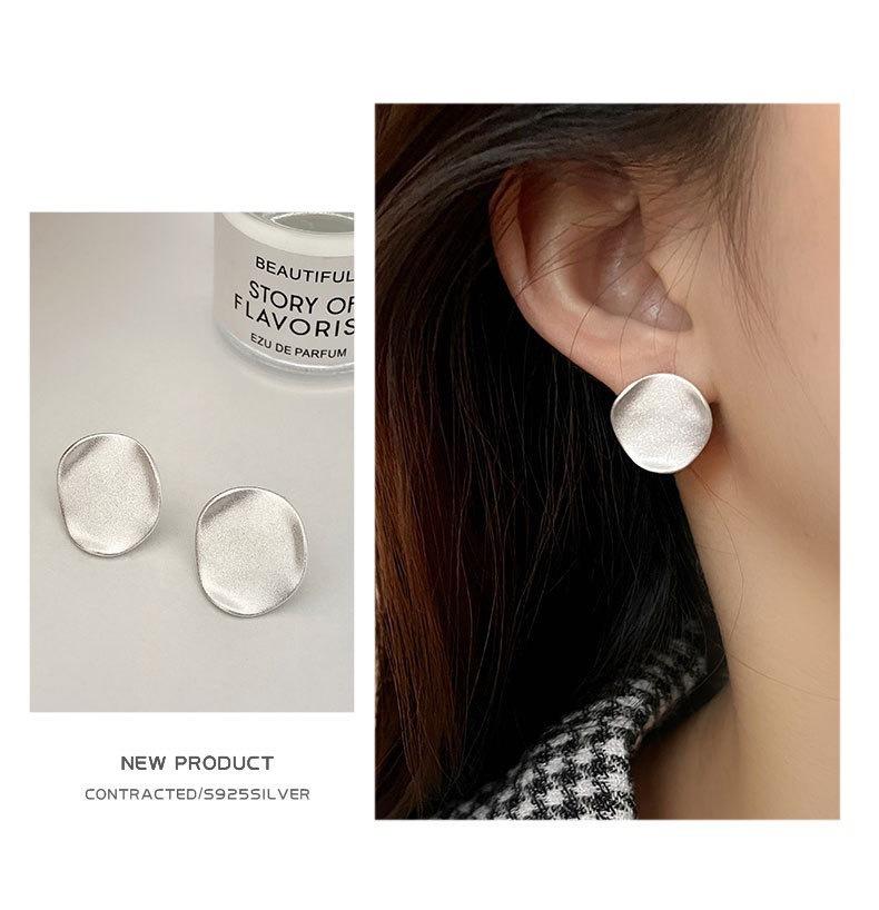 Brincos de pino geométricos redondos foscos femininos, personalidade da moda, temperamento irregular, brincos de agulha de prata S925, brincos de celebridades da Internet