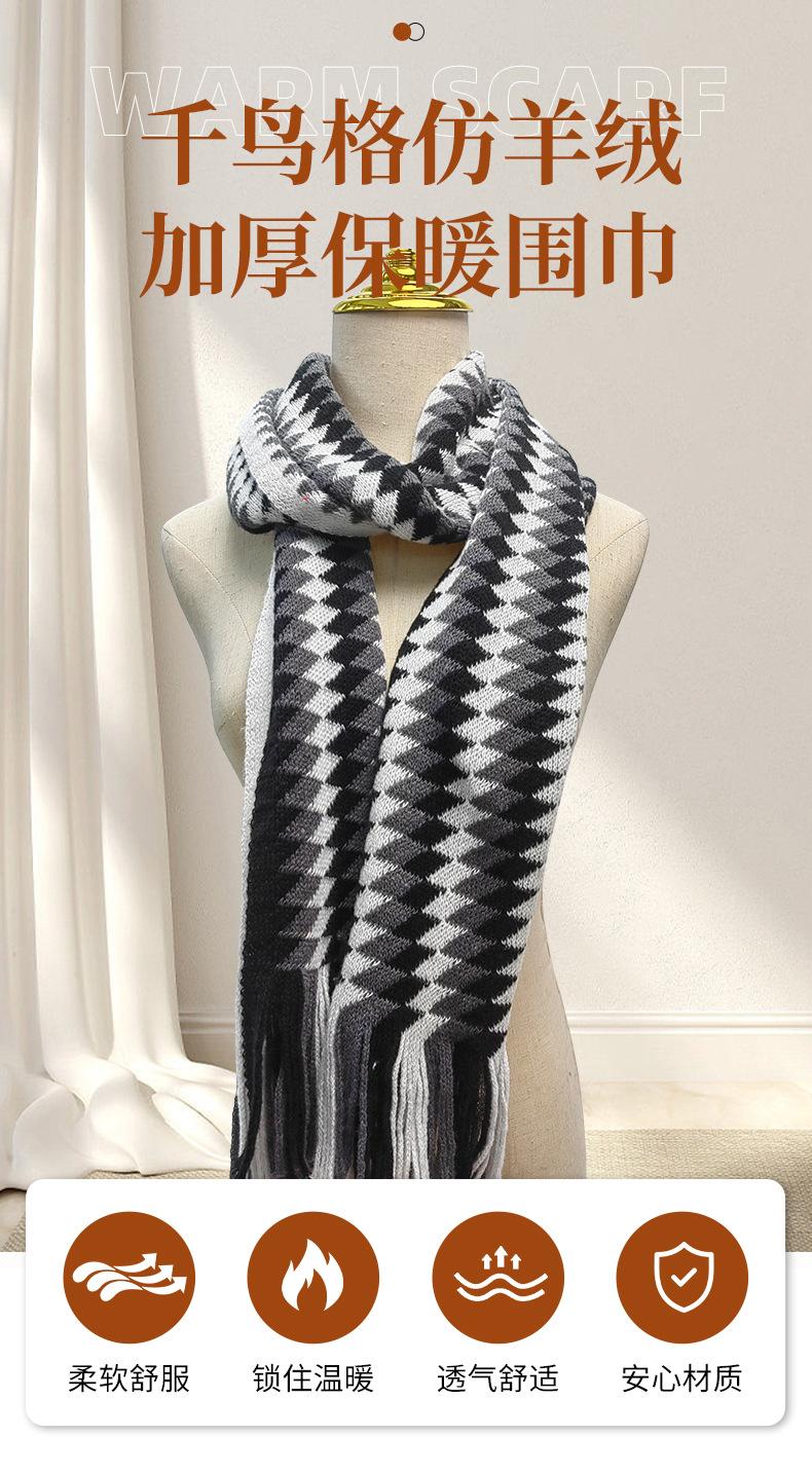 Novo cachecol pied de poule feminino inverno estilo coreano grosso quente proteção de pescoço dupla face xadrez borla cachecol moda
