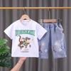 Terno de verão para meninos 2022 Novo estilo coreano infantil estilo ocidental manga curta para bebês na moda verão bonito conjunto de duas peças