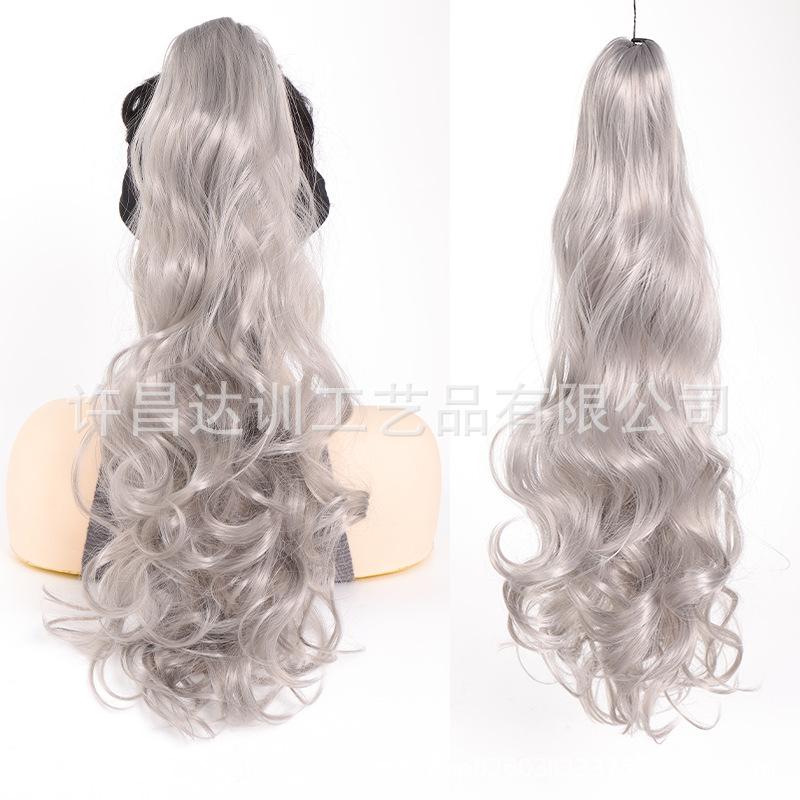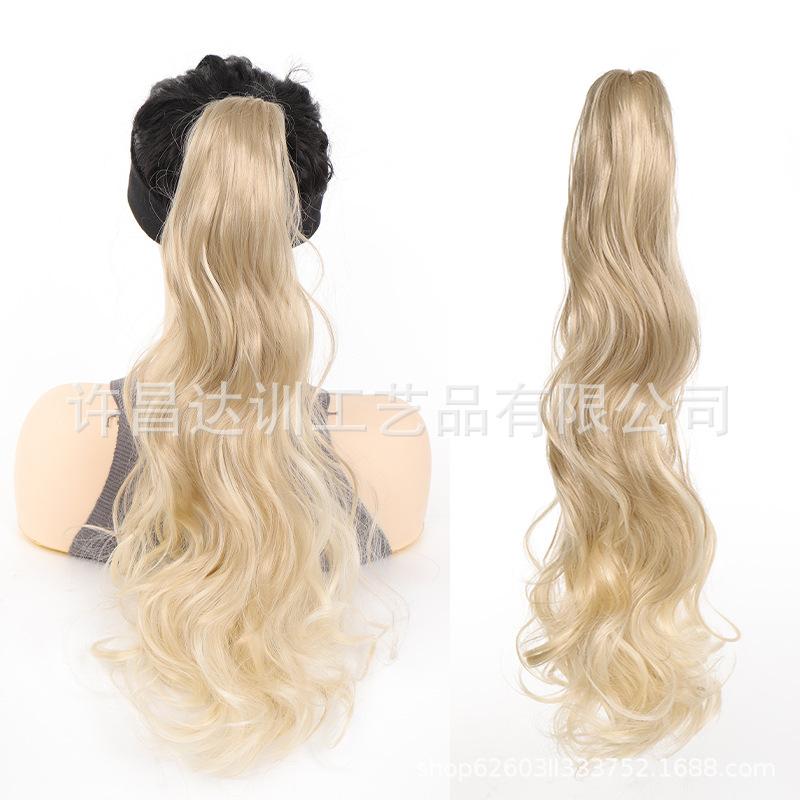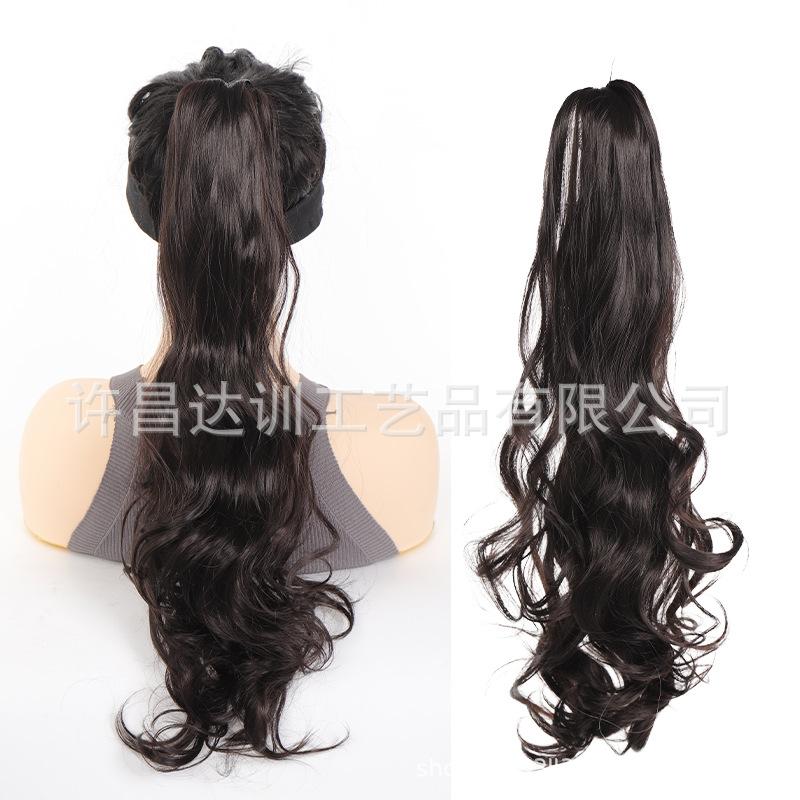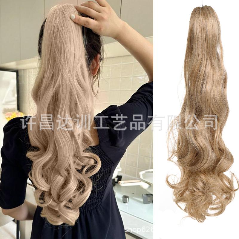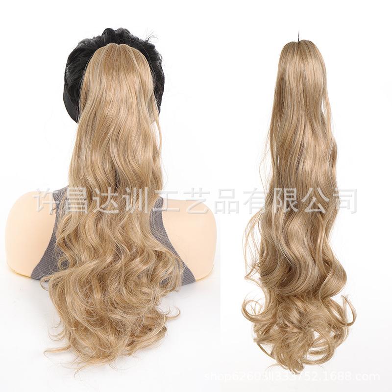 Comércio Exterior Estilo Europeu e Americano Peruca Cabelo Cacheado Presilha de Garra Rabo de Cavalo Alto Onda Grande Fofa Presilha de Garra Peruca de Fibra Sintética Rabo de Cavalo Cabelo Longo Cacheado