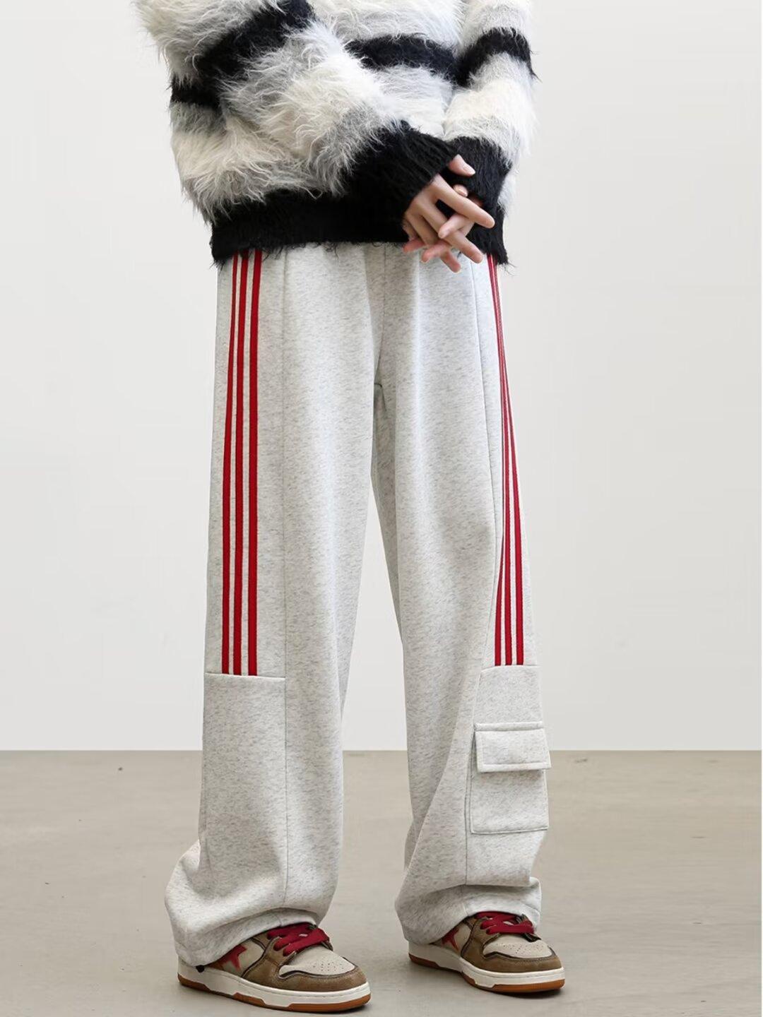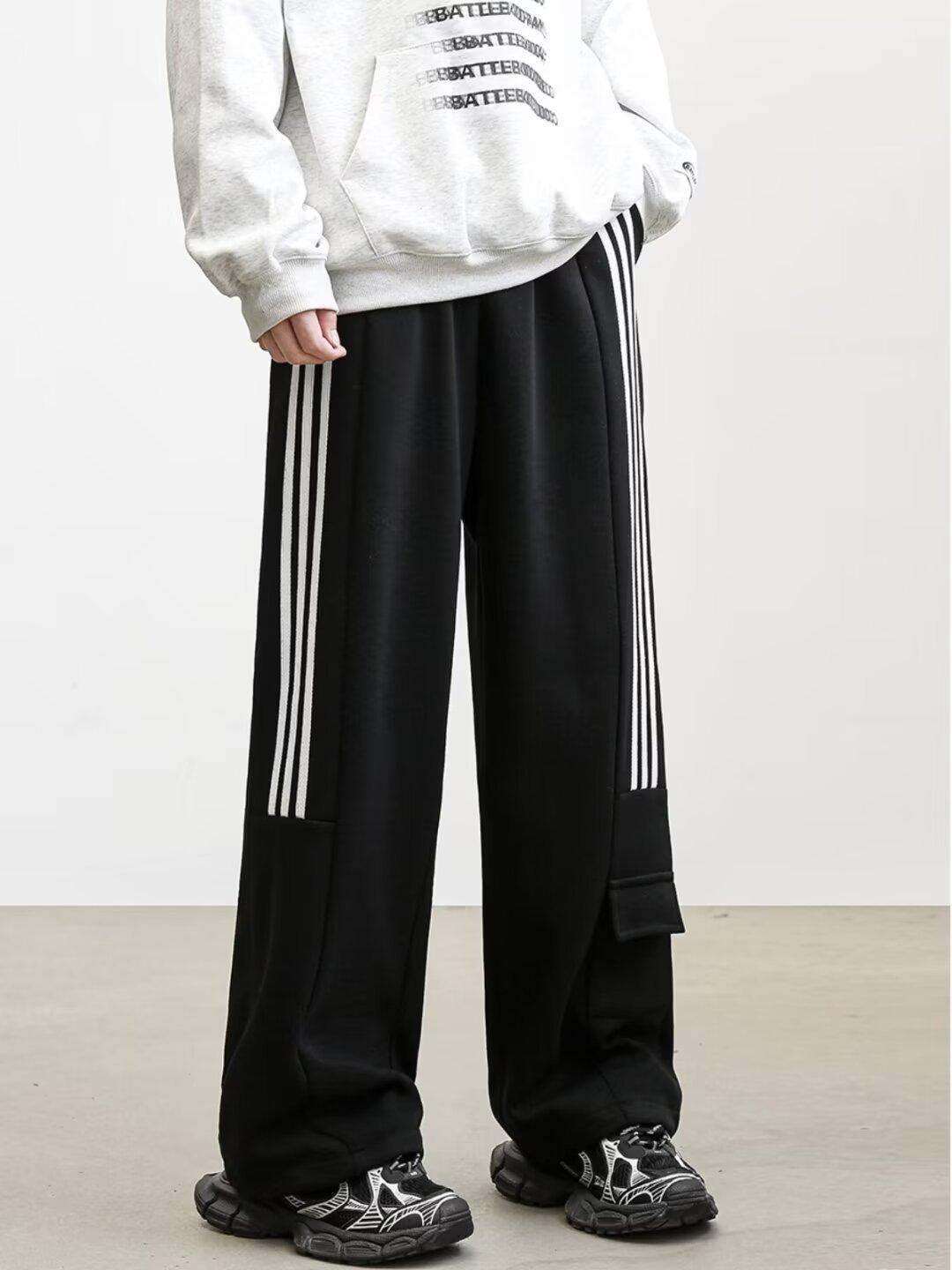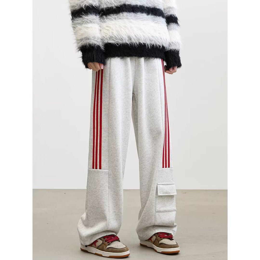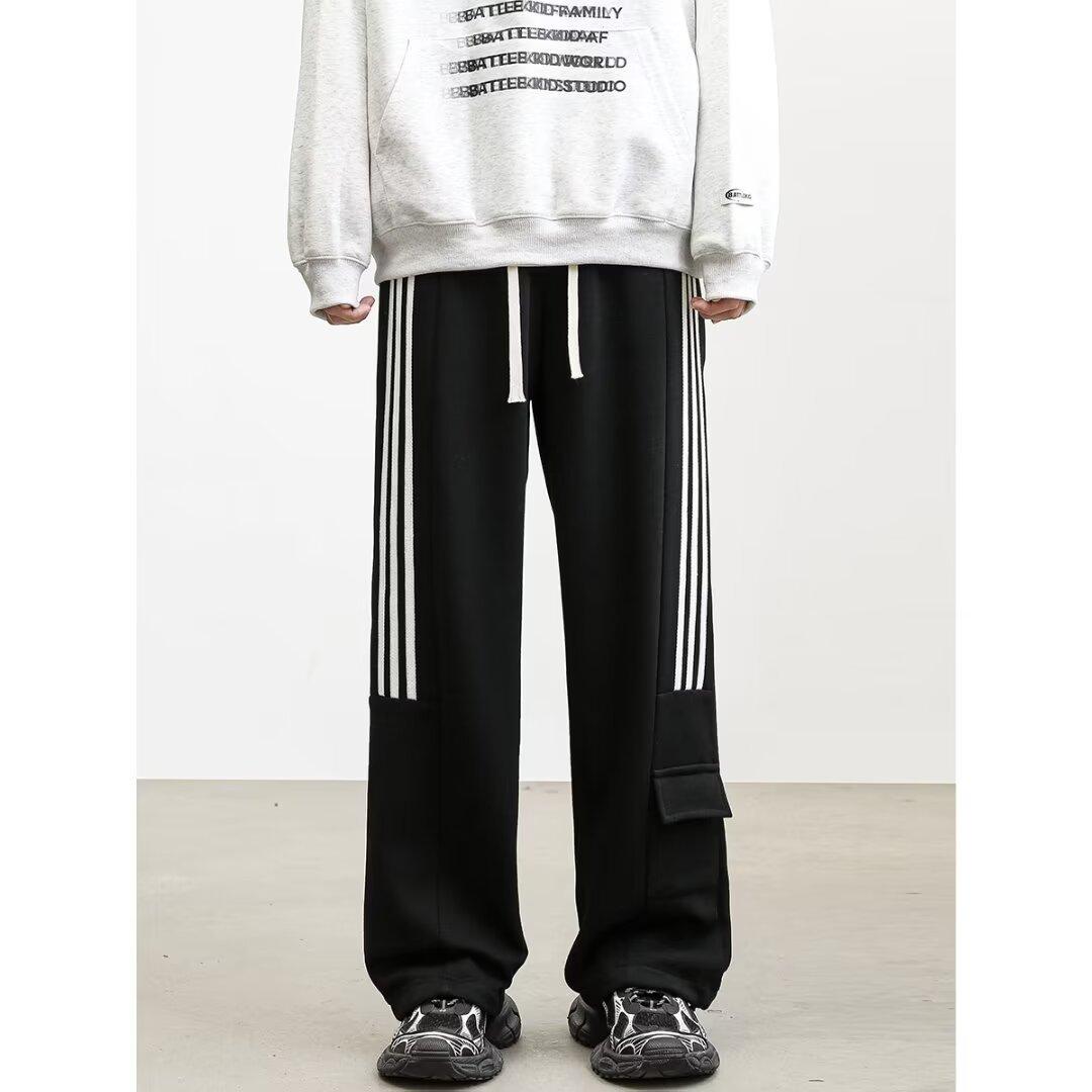 Compre Americano retro all-match casual listrado calças retas dos homens primavera e outono moda solta casal calças largas no atacado no Joom.pro