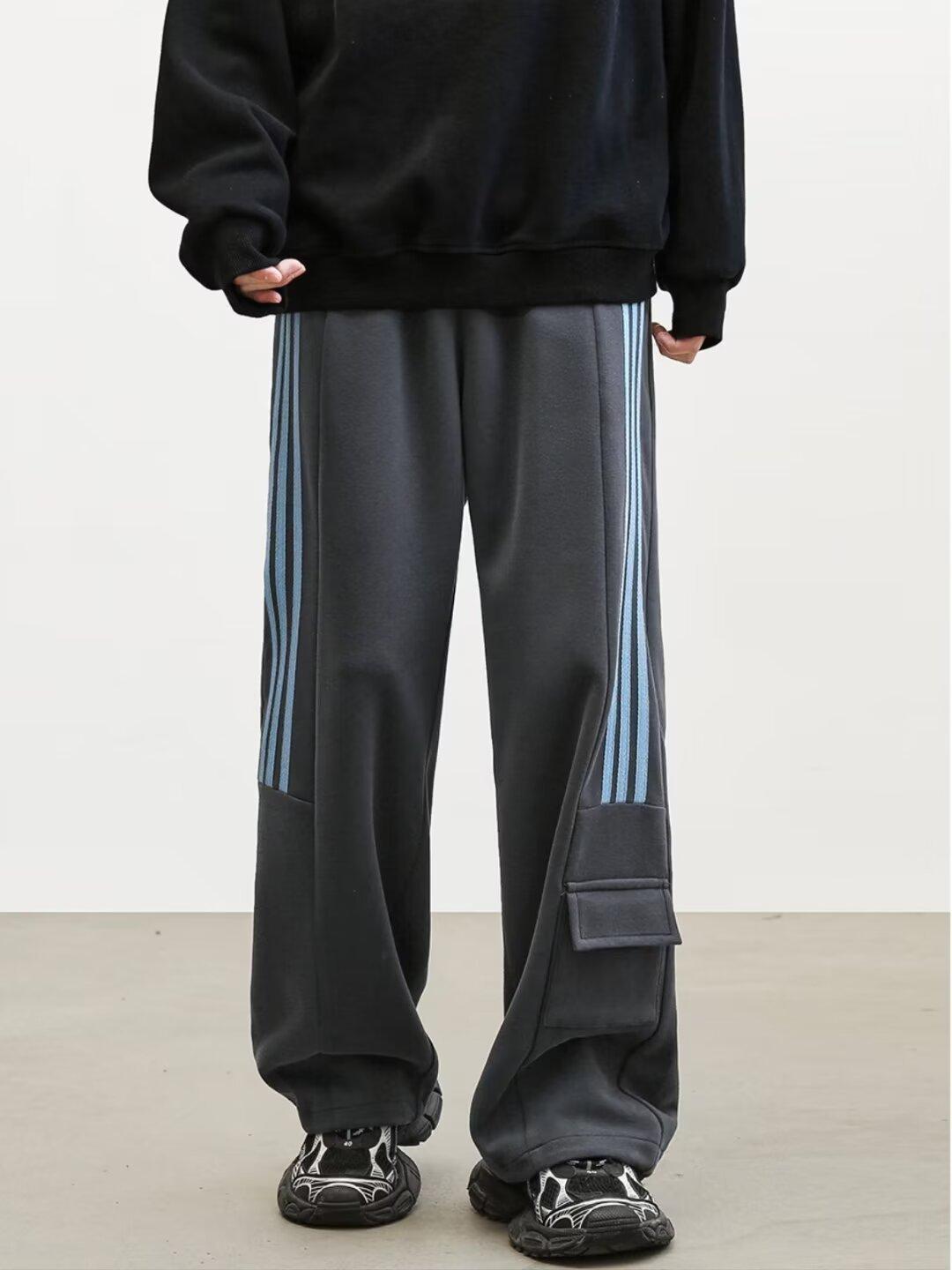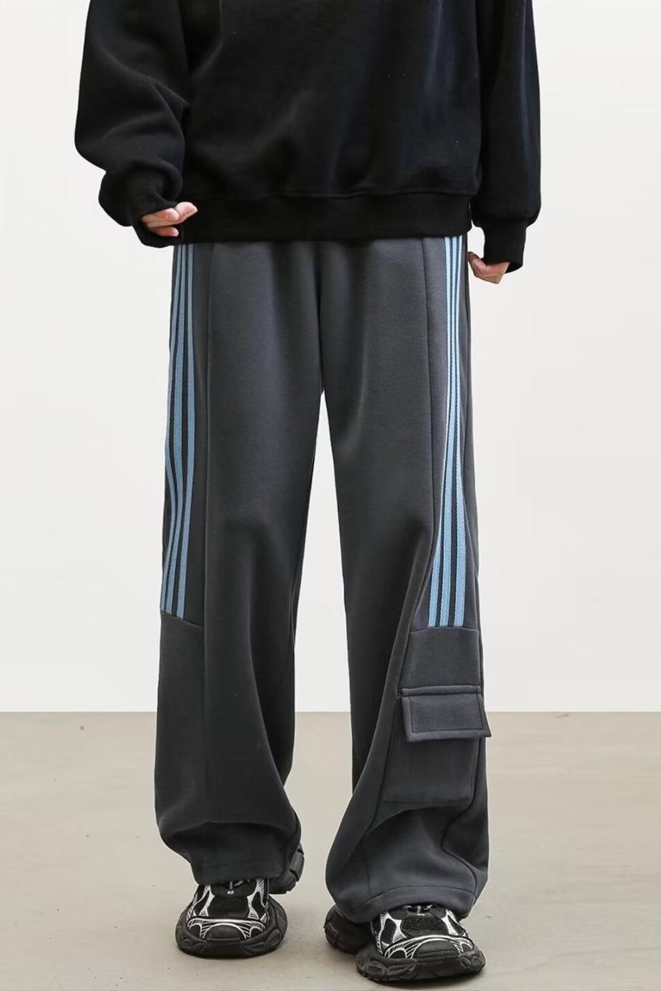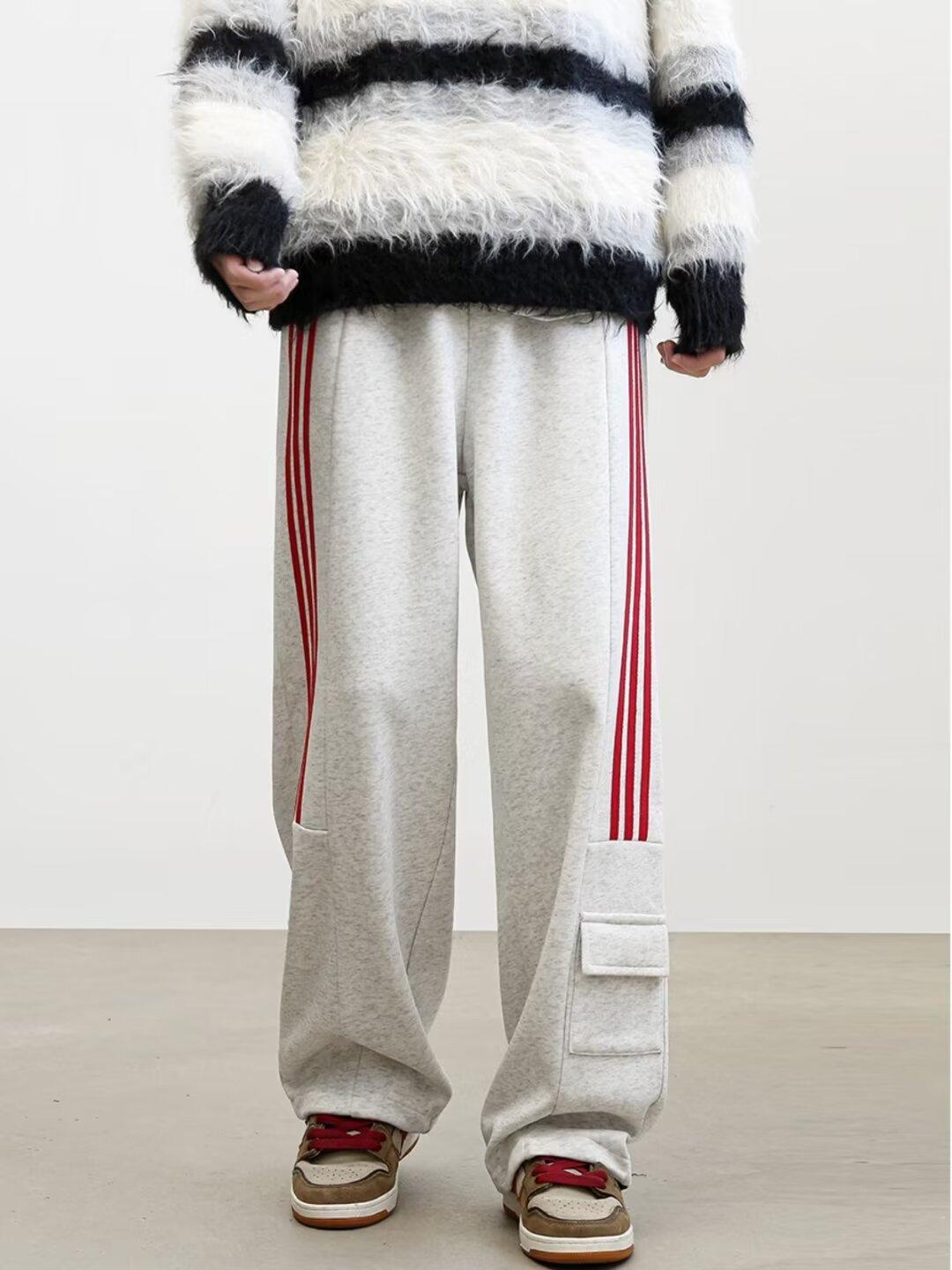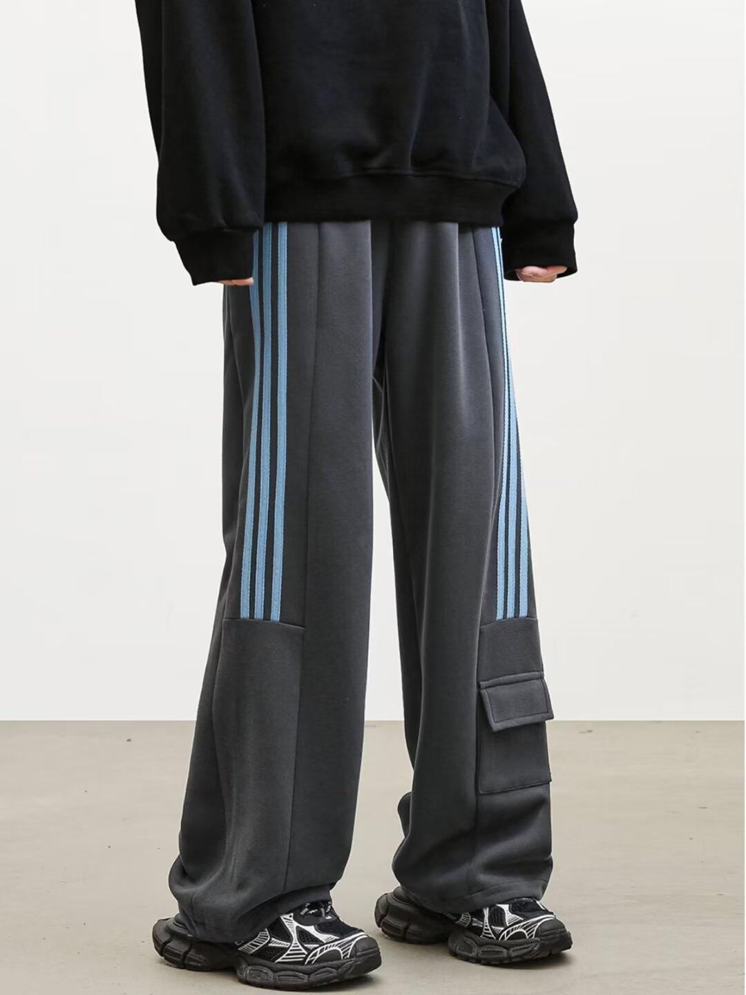 Compre Americano retro all-match casual listrado calças retas dos homens primavera e outono moda solta casal calças largas no atacado no Joom.pro