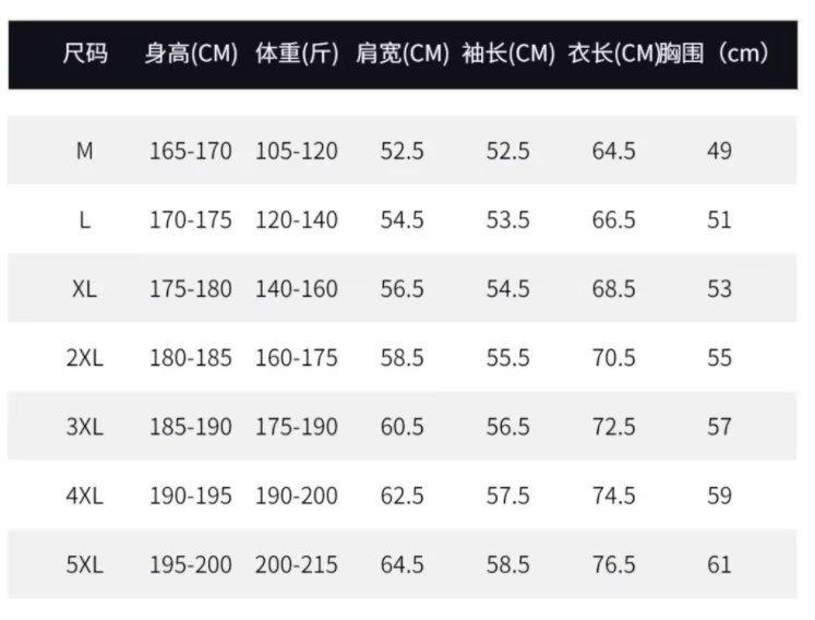 M, L, XL, 2XL, 3XL, 4XL, 5XL