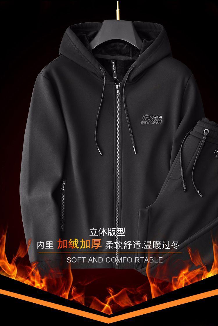 Conjunto Casual de Inverno Masculino Moletom com Capuz Roupa Esportiva Algodão Jaqueta Cardigã Forrado com Lã Conjunto Grosso de Duas Peças 38