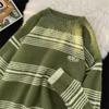 Outono e Inverno hiphop vintage costura listrado suéter masculino americano rua ins estilo preguiçoso solto pullover suéter